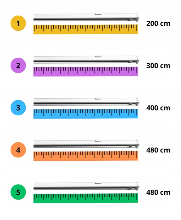 - Kupując wymiar powyżej 400 cm do 600 cm, szyny będą dzielone na 3 odcinki.