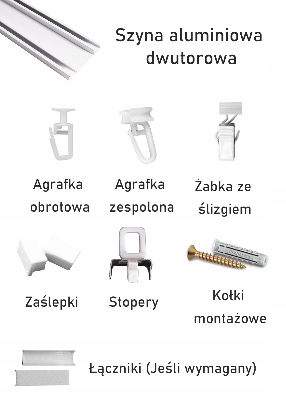 - Kupując wymiar powyżej 200 cm do 400 cm, szyny będą dzielone na 2 odcinki.