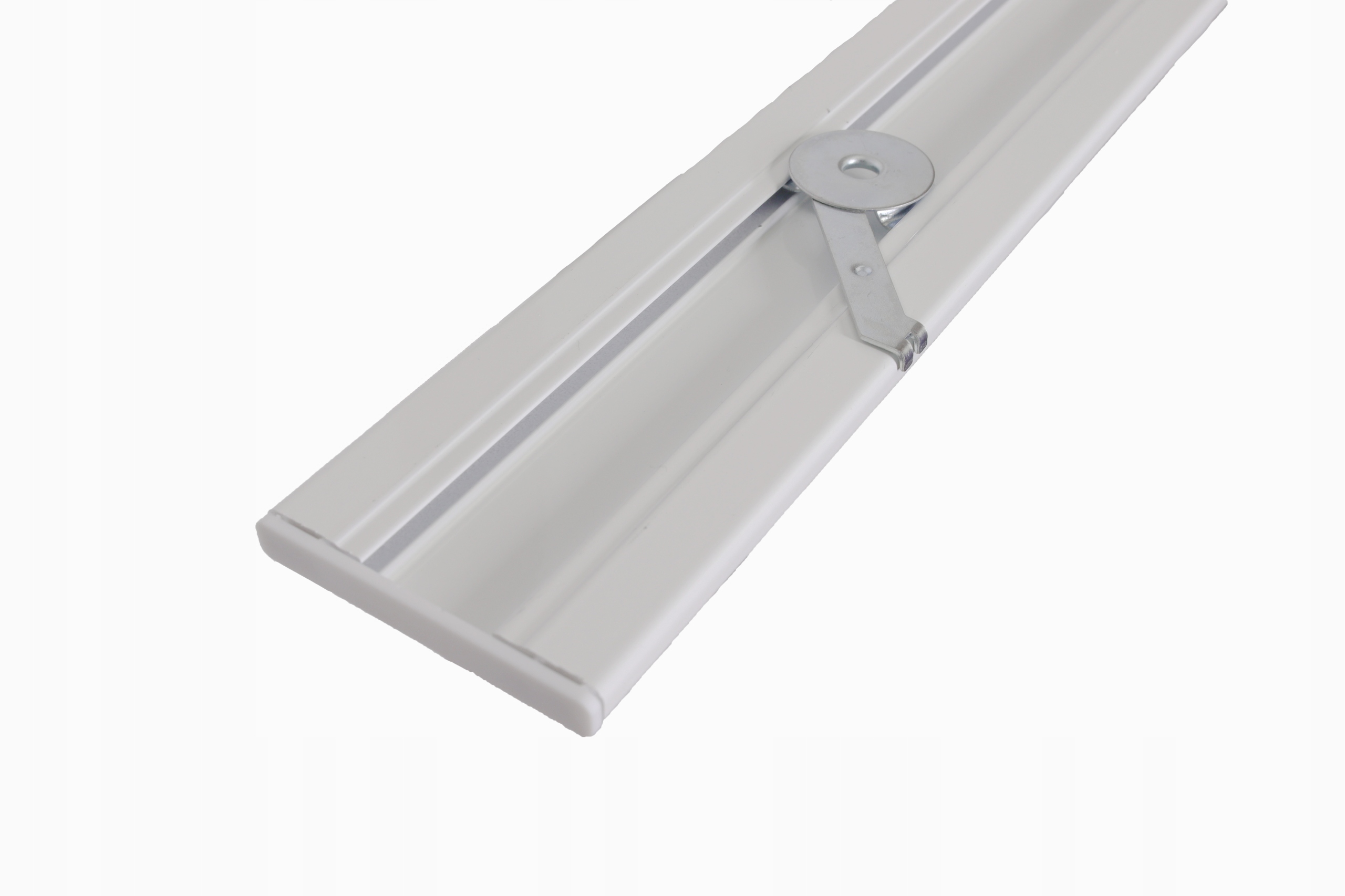 – System szyn SLIM MAX wykonanych z mocnego aluminium o wymiarach 55 × 7 mm przystosowany do zawieszania średnio ciężkich tkanin, z napędem manualnym.