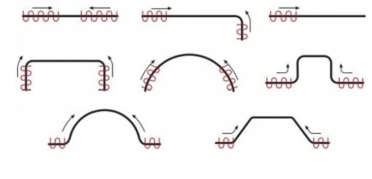 System ten można giąć punktowo pod kątem prostym lub innym zgodnie z wymaganiami użytkownika, jak również promieniowo, łukiem ciągłym odwzorowując w ten sposób kształt okien lub ścian. Istnieje możliwość gięcia wewnętrznego jak i zewnętrznego zgodnie z poniższymi schematami.