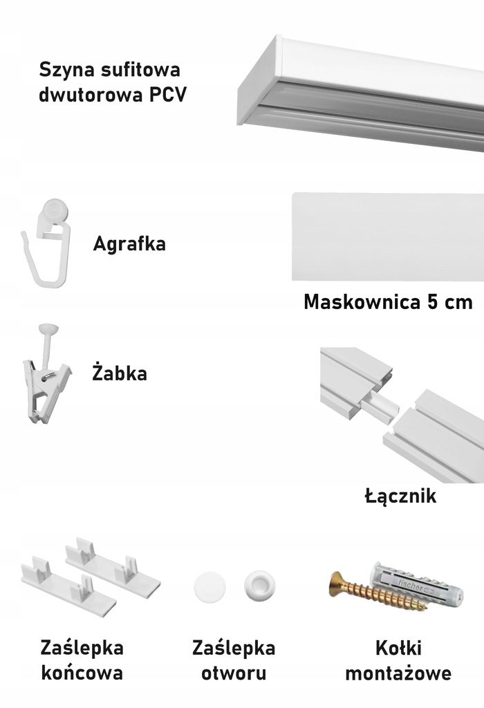 Podana cena dotyczy 250 cm szyny z osłoną wraz z akcesoriami