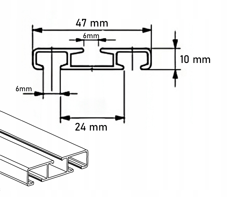 Podana cena dotyczy 540 cm szyny wraz z akcesoriami