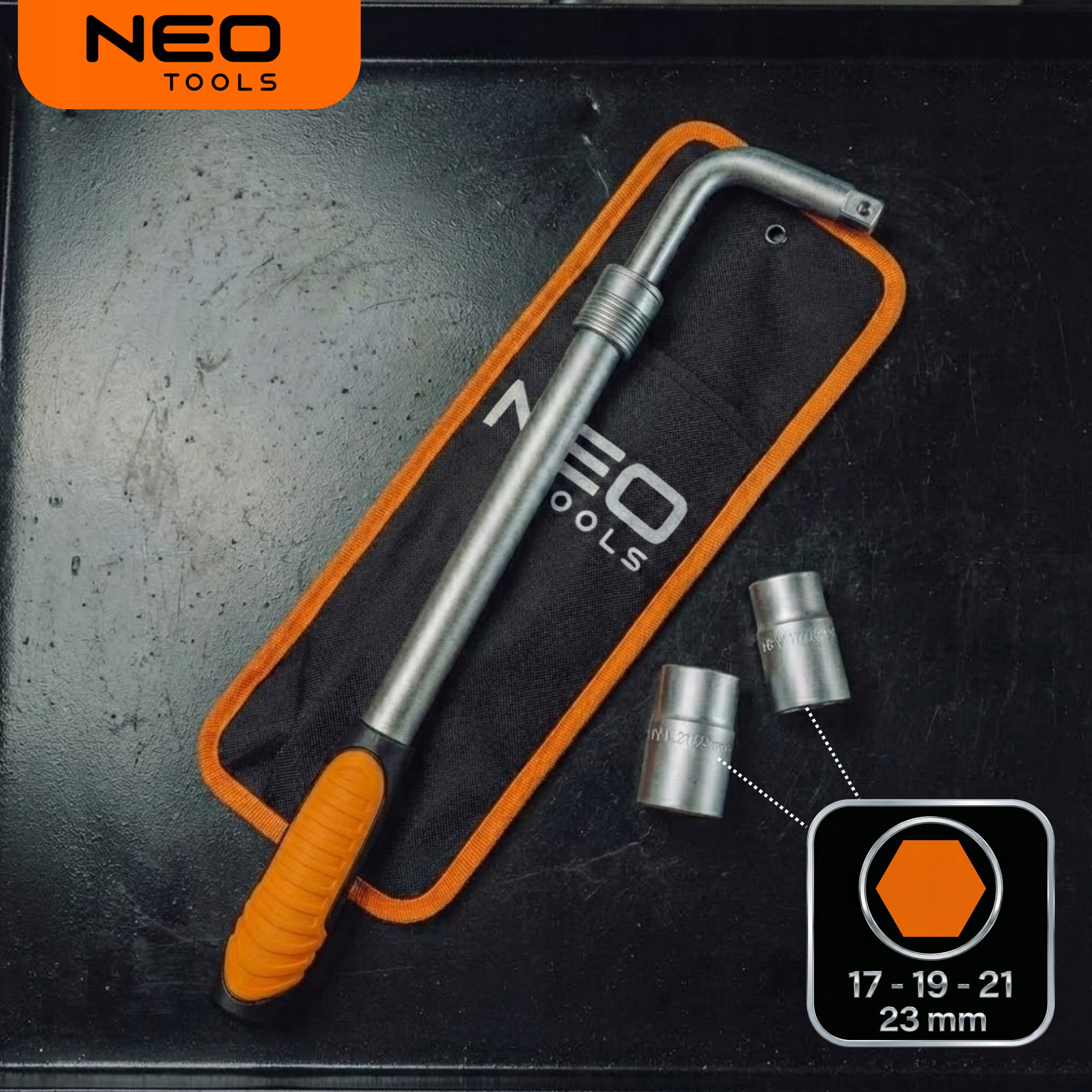 NEO TOOLS Klucz teleskopowy do kół z nasadkami: 17 x 19 mm, 21 x 23 mm