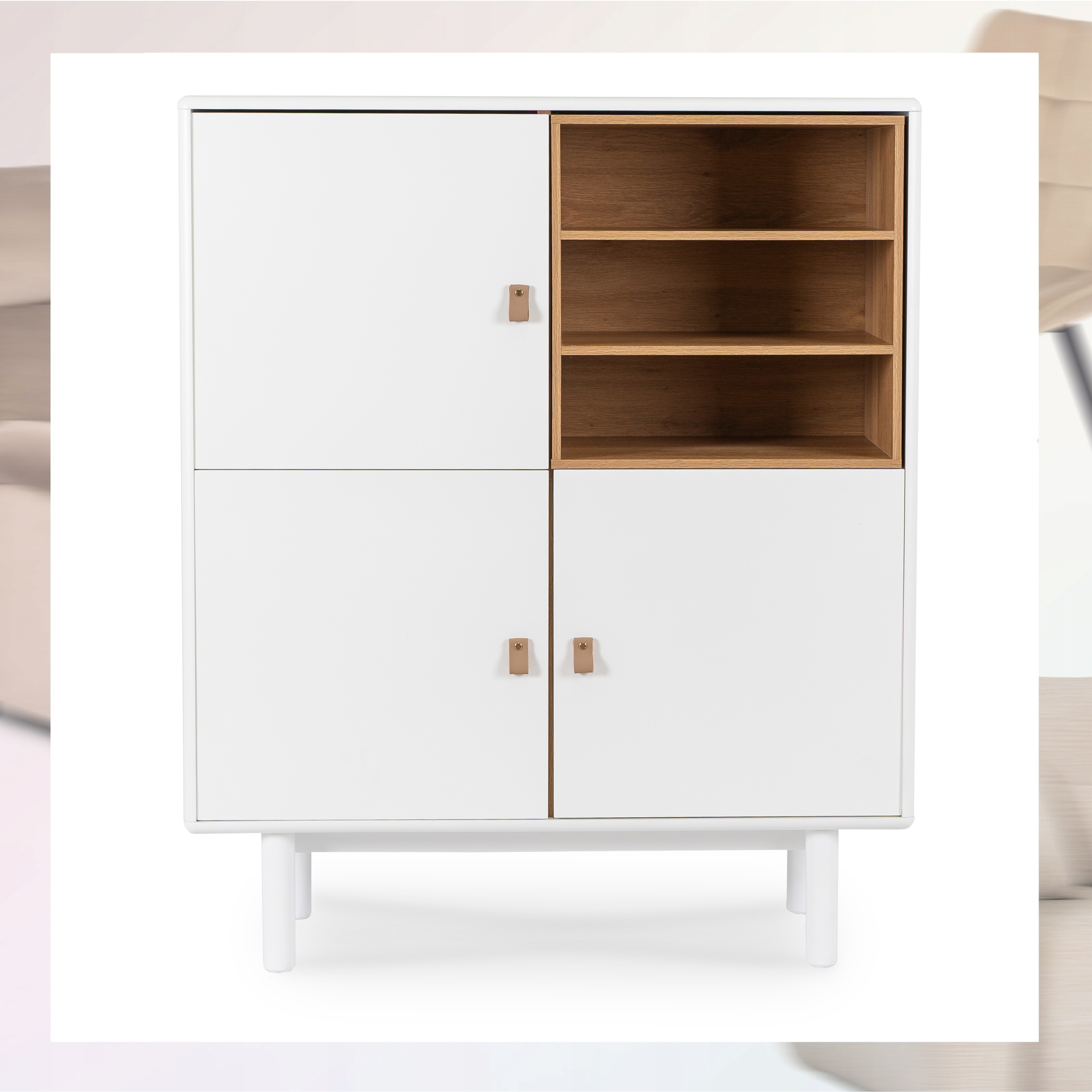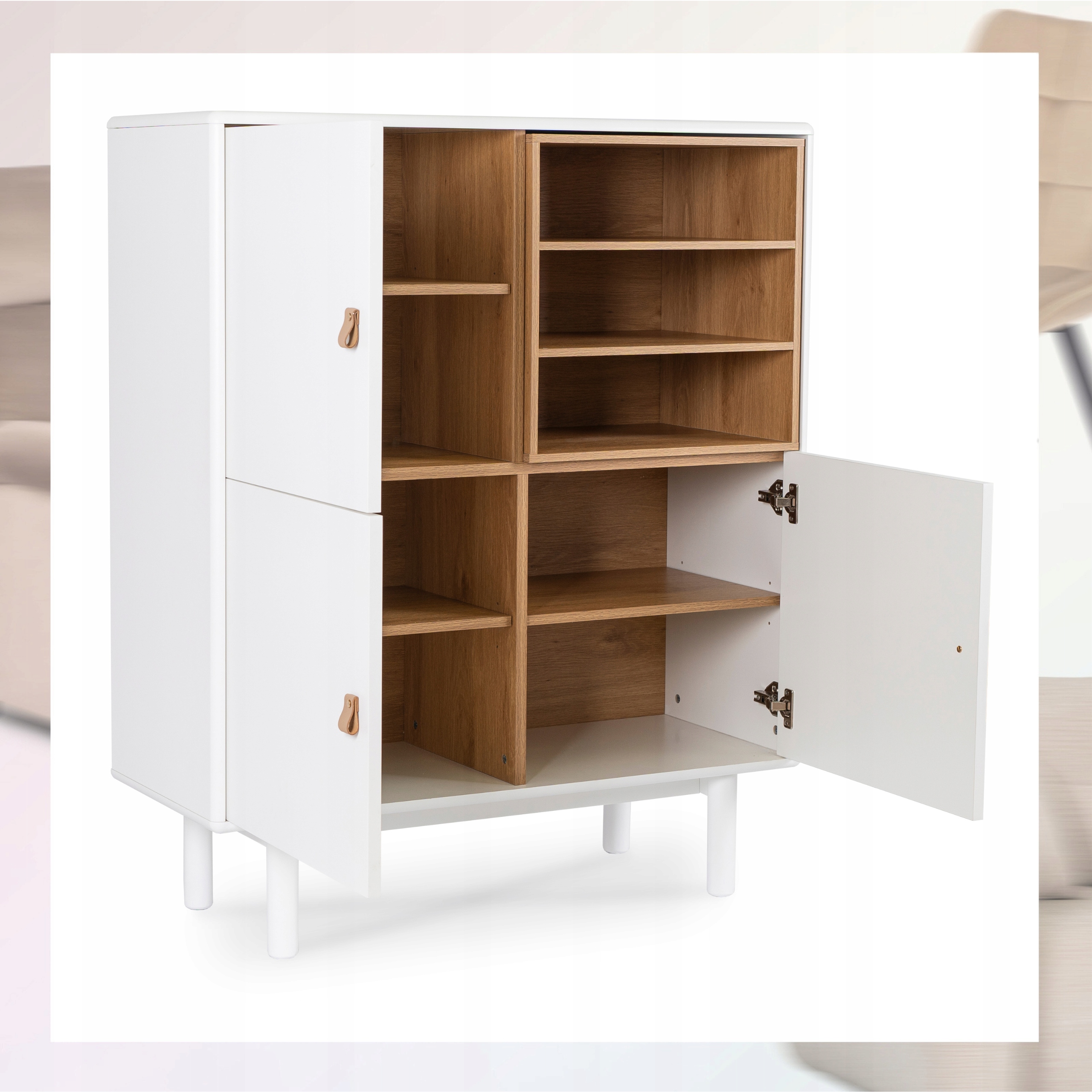 ⭐ Skórzane uchwyty wyglądają bardzo ładnie i podkreślają elegancki styl komody.