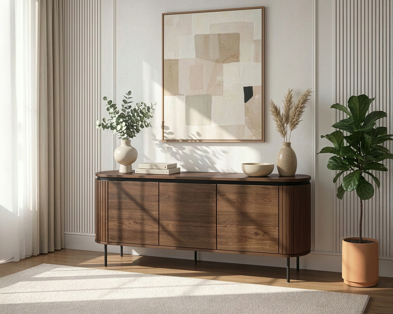 - Ozdobne lamele – eleganckie pionowe frezowania dodają meblowi wyrazistości i stylu, idealnie wpisując się w nowoczesne trendy wnętrzarskie.