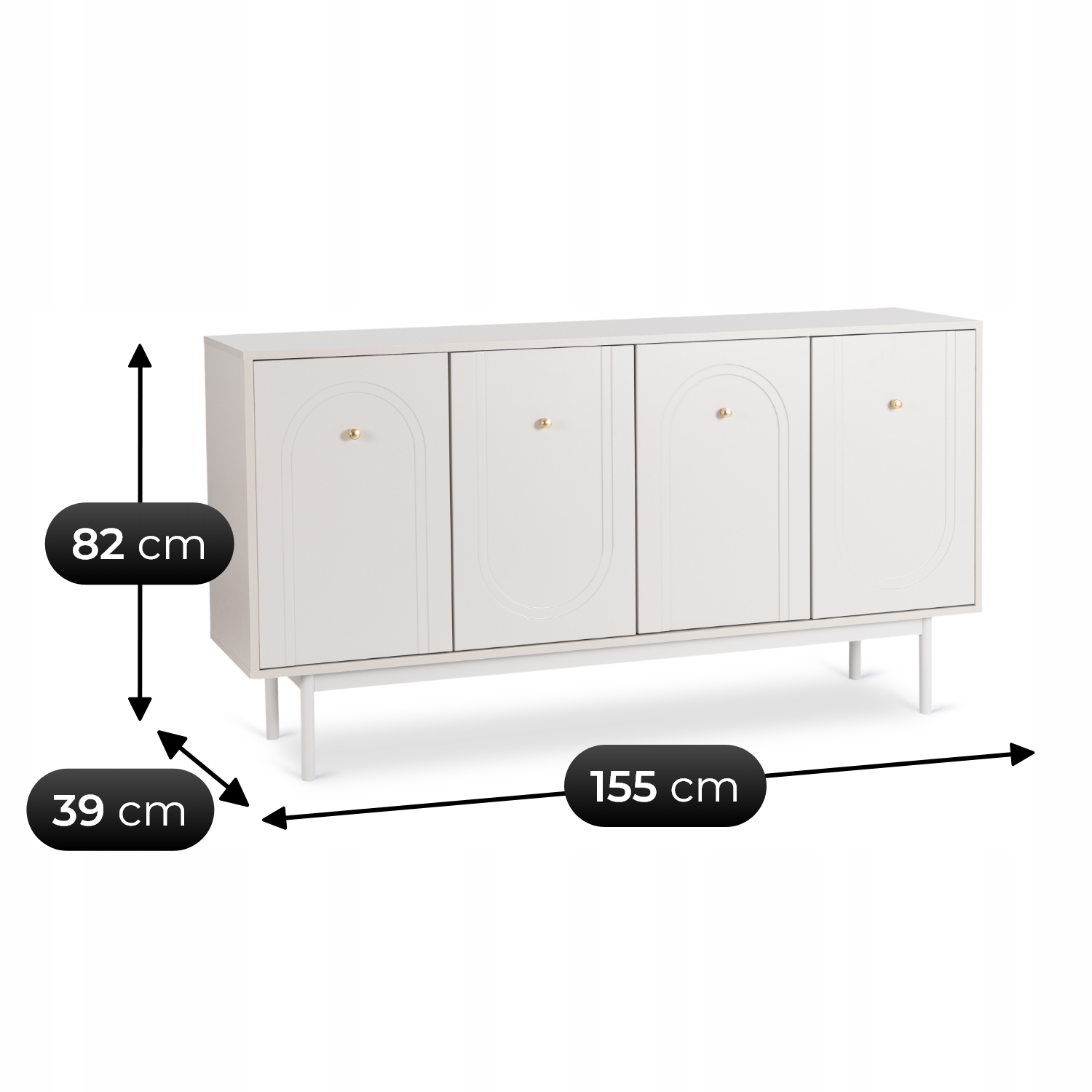 Komoda o wymiarach 155 x 39 x 82 cm to nowoczesny i funkcjonalny mebel idealny do salonu, sypialni. Fronty drzwiczek zdobią eleganckie łuki, które nadaje meblowi unikalny i nowoczesny charakter.