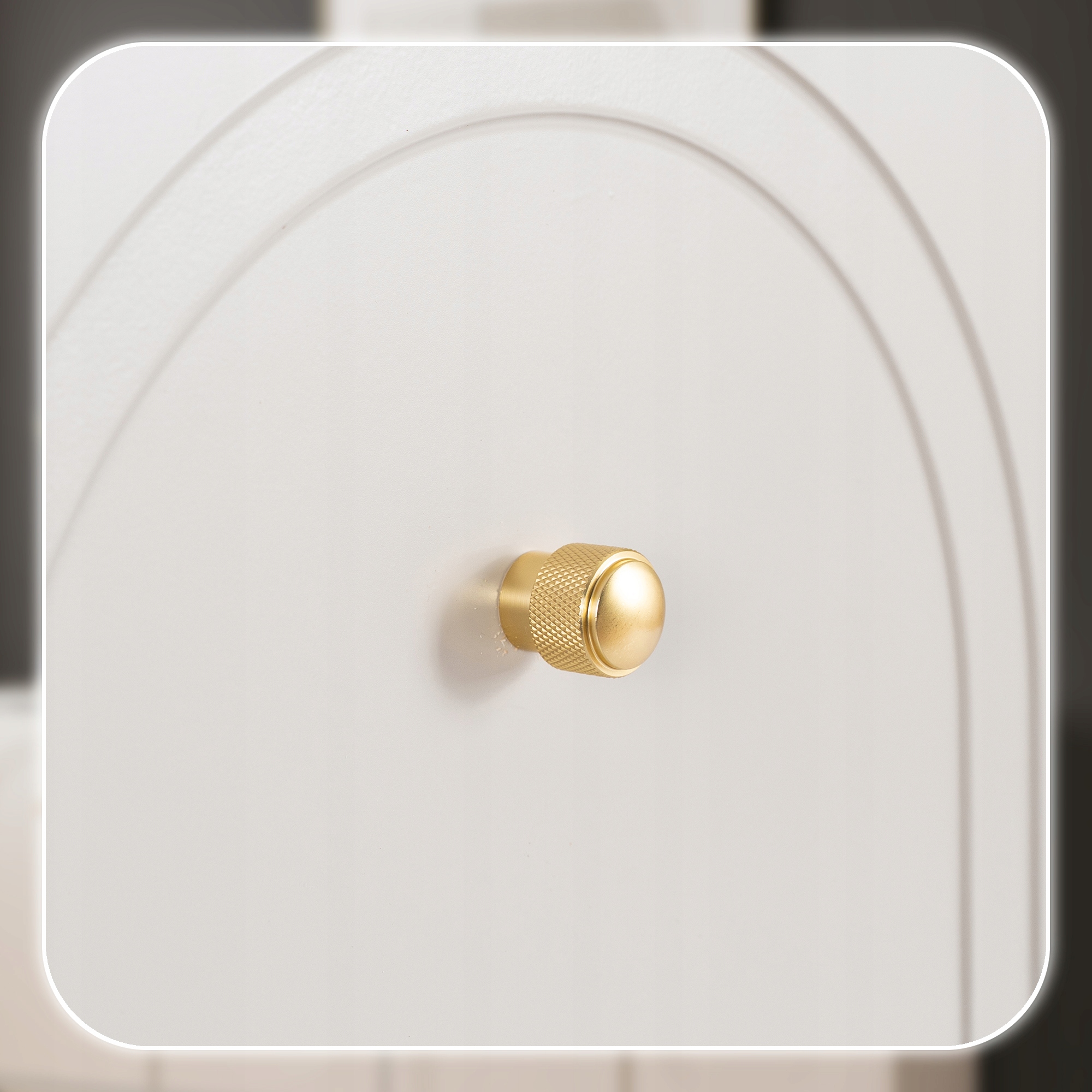 Tak, fronty wyposażone są w złote, subtelne gałki, które nadają meblowi elegancji i ułatwiają codzienne użytkowanie.