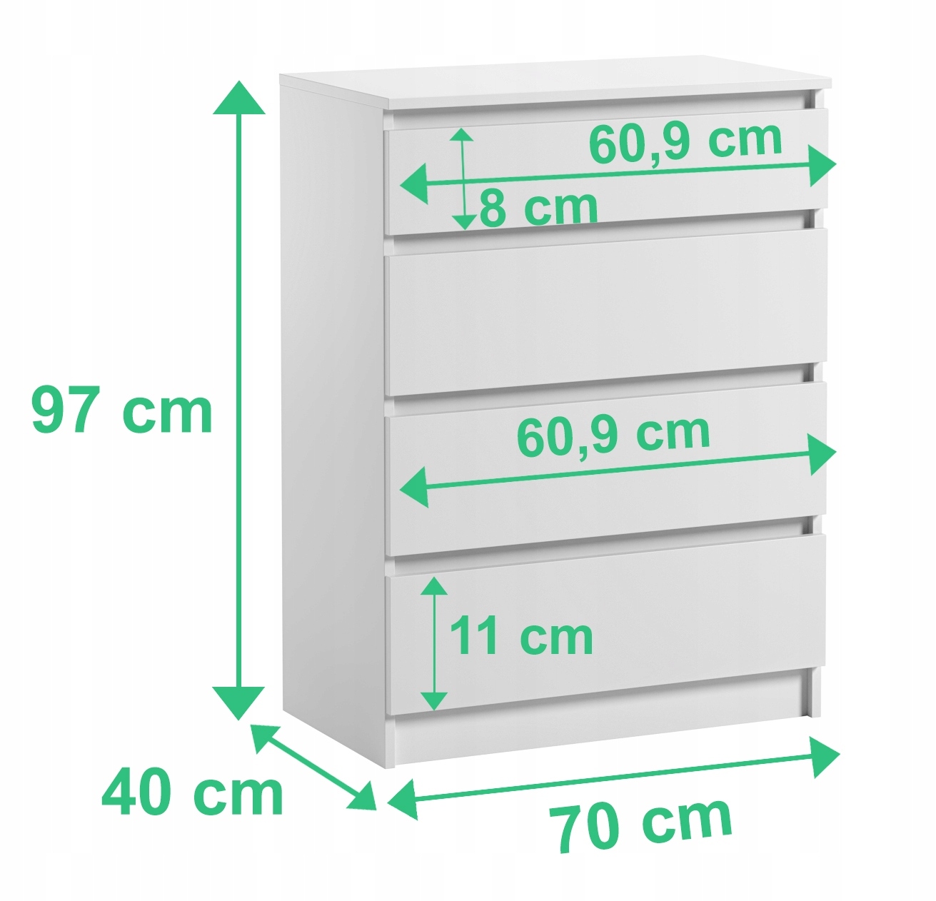 Komoda Szafka Pari 4 | Nowoczesna 4 Szuflady | Meble do Sypialni, Salonu, Biura 70 x 40 x 97