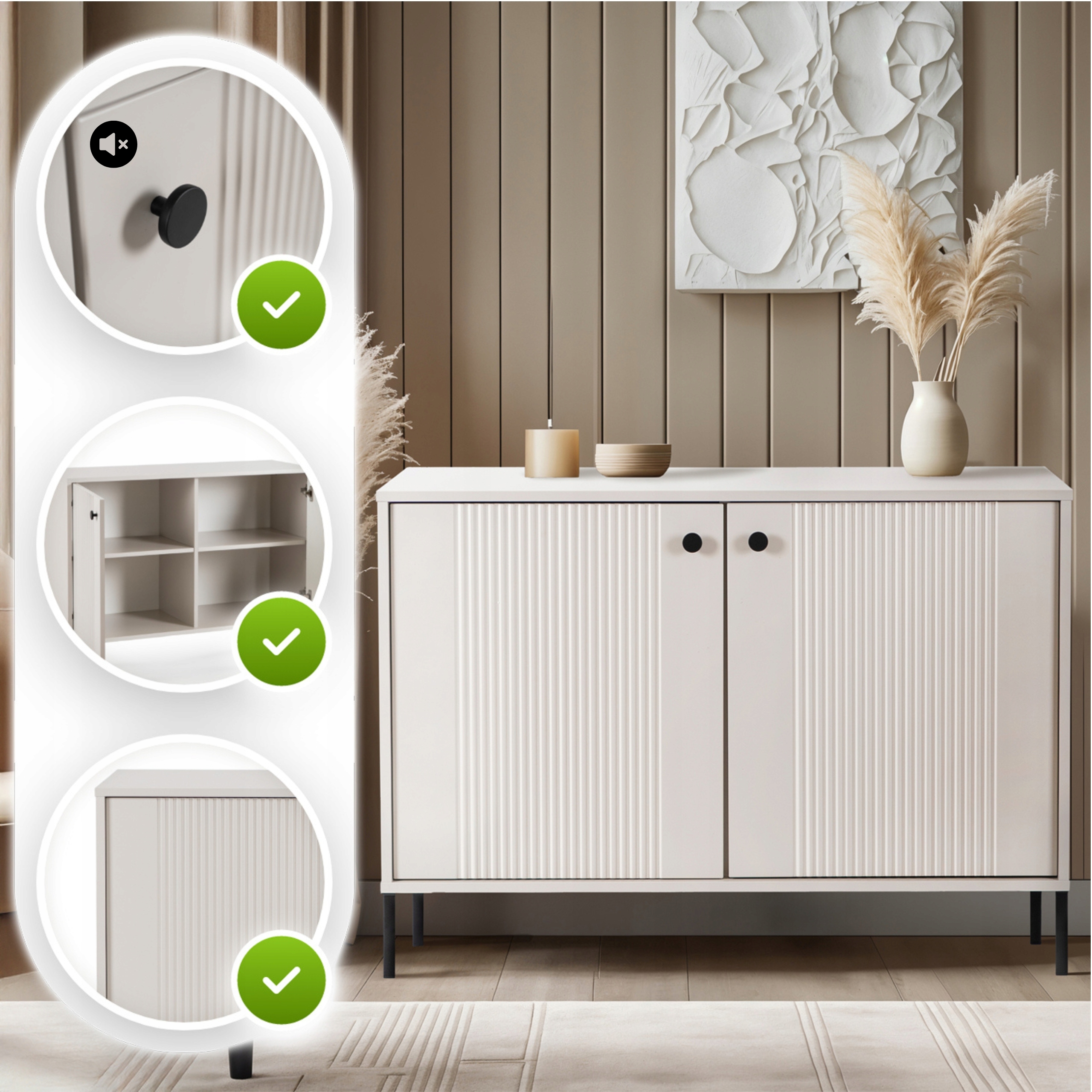 ✨ Komoda Ryflowana Nowoczesna Do Salonu Sypialni Mała Kaszmir SOFT 104 cm