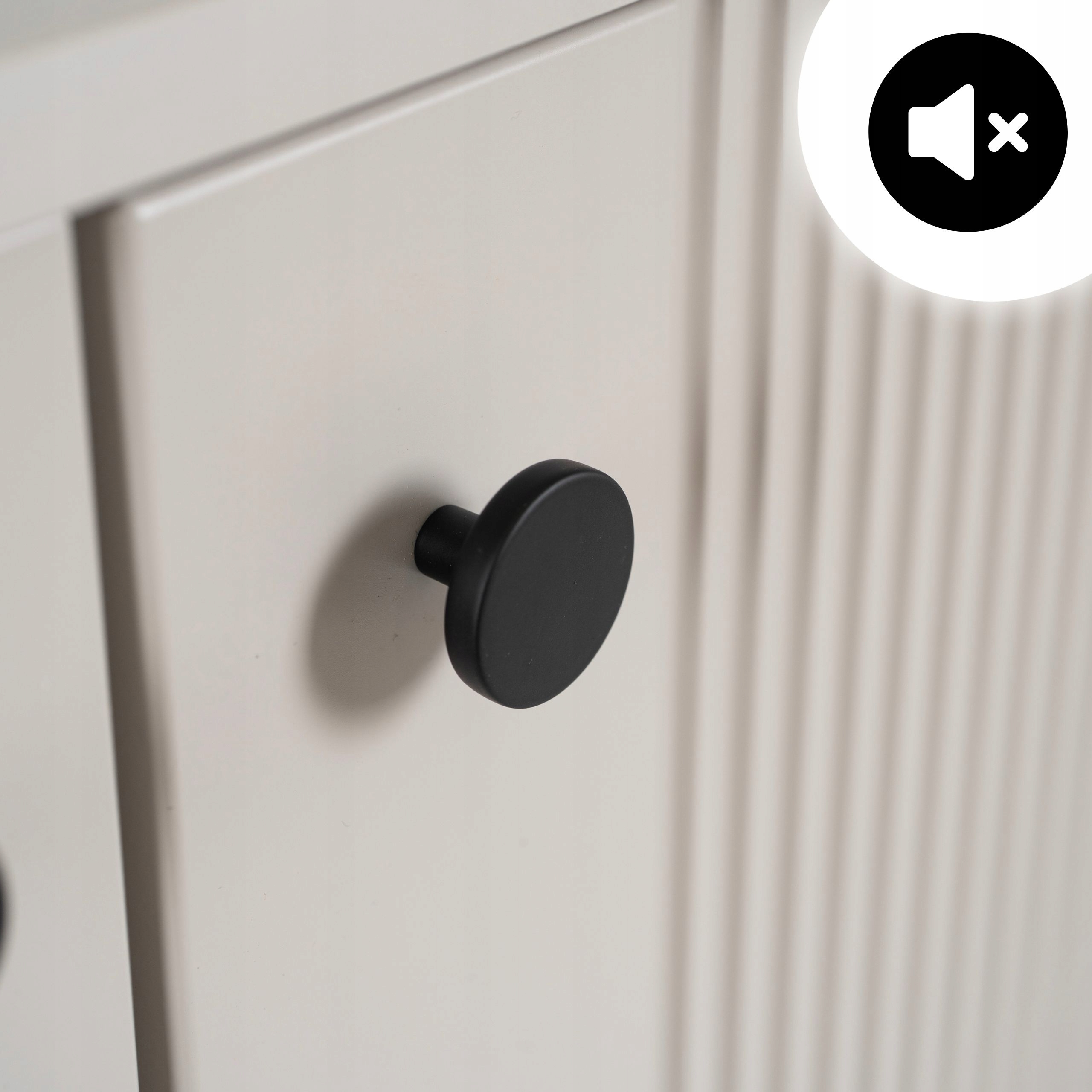 Tak, komoda SOFT ma czarne, minimalistyczne uchwyty. Zastosowany system cichego domyku sprawia, że zamykanie drzwiczek odbywa się płynnie i bezgłośnie, co zwiększa komfort użytkowania i chroni mebel przed uszkodzeniami.