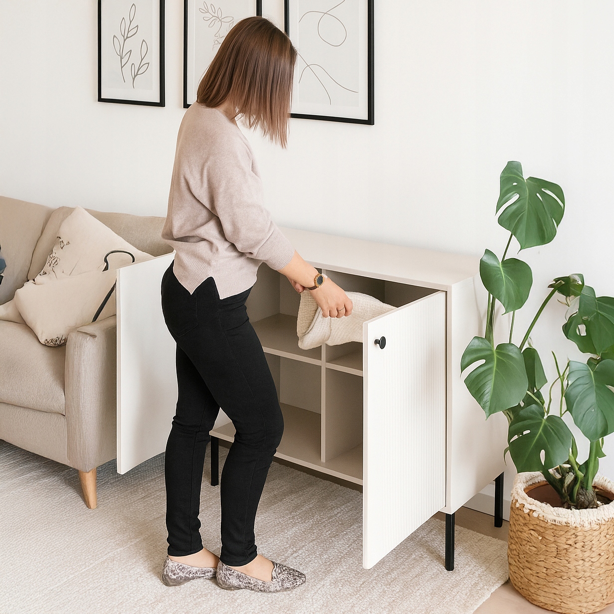 - Dla osób urządzających wnętrze – komoda stanowi elegancki i nowoczesny akcent w salonie, sypialni, lub przedpokoju. Dzięki swojej formie nadaje przestrzeni charakteru i stylu.