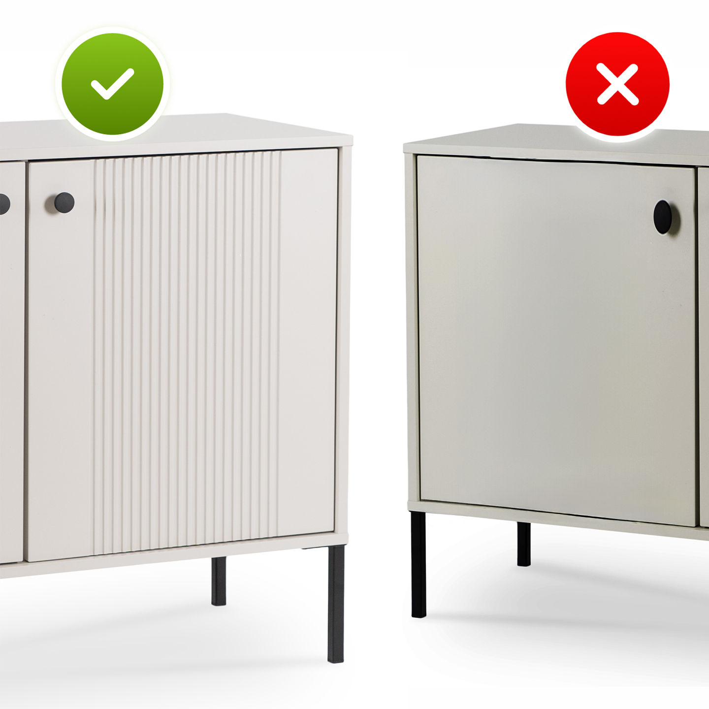 - Ozdobne ryflowanie – eleganckie pionowe frezowania dodają meblowi wyrazistości i stylu, idealnie wpisując się w nowoczesne trendy wnętrzarskie.