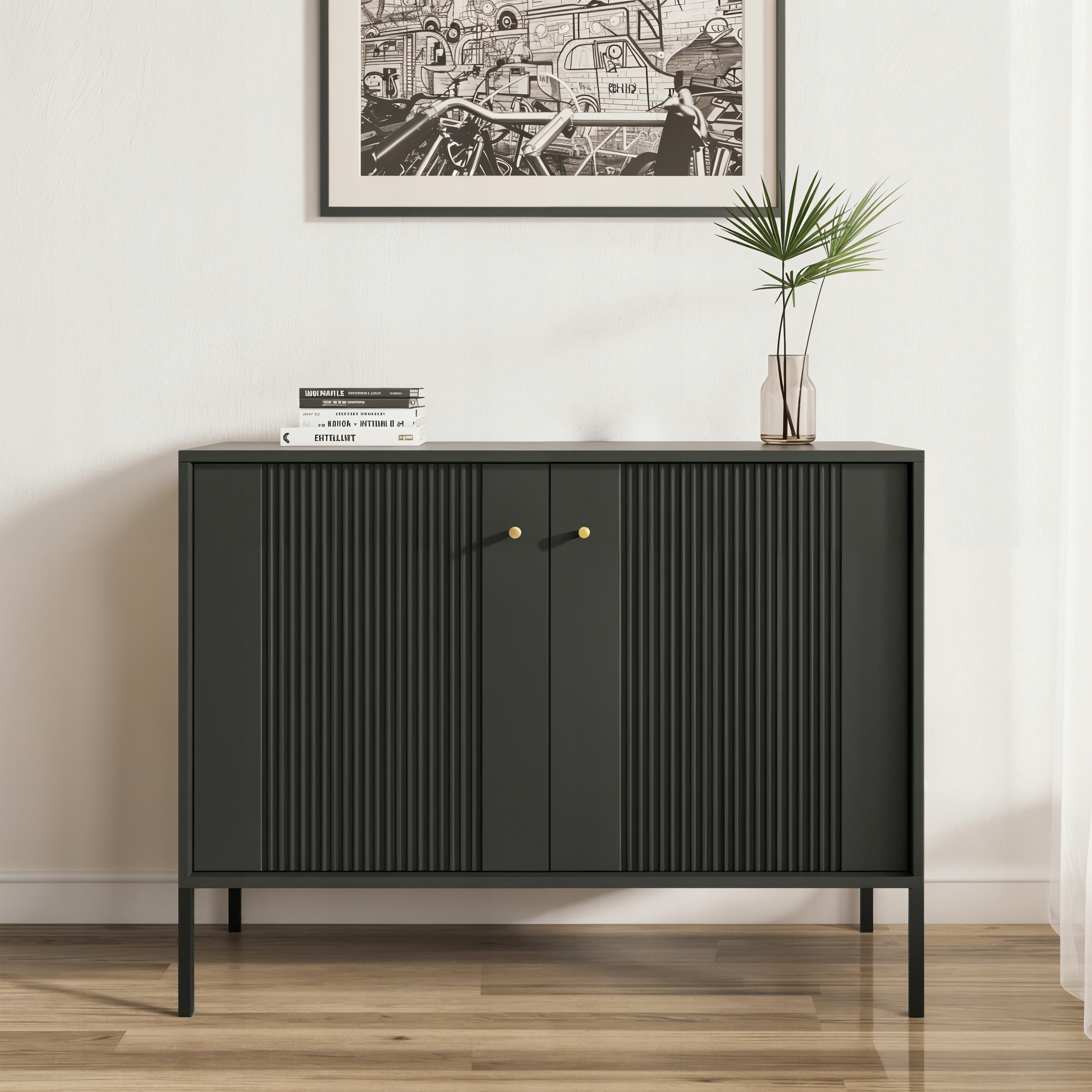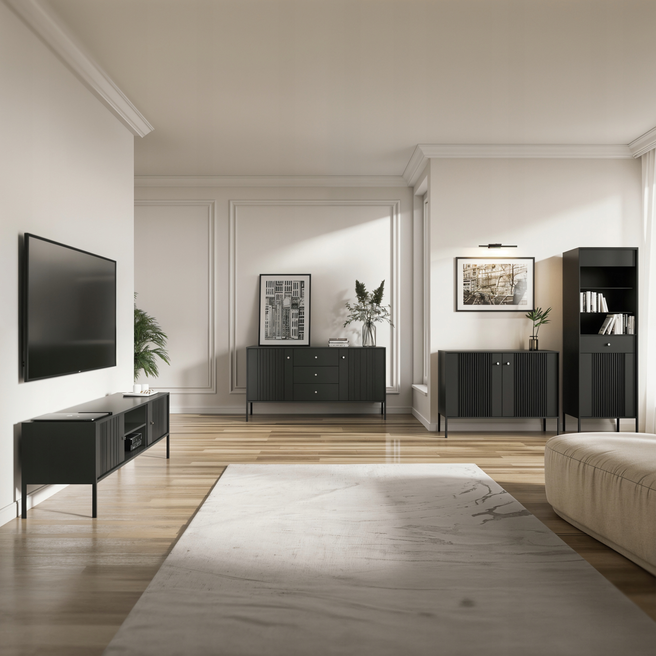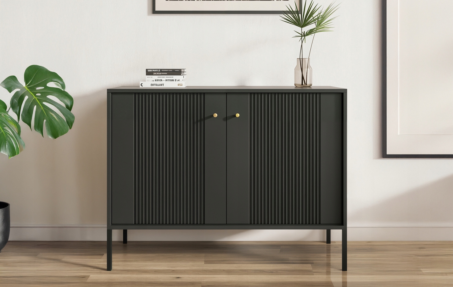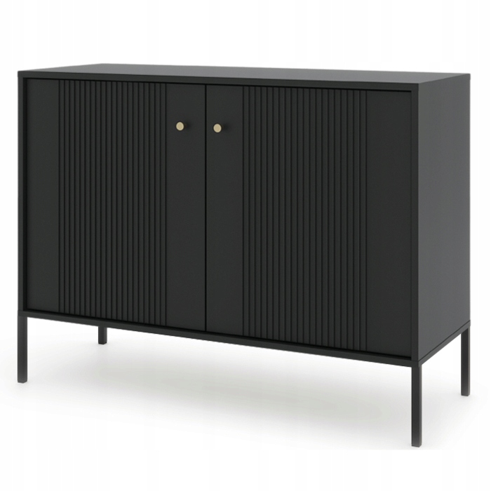Komoda Ryflowana z Lamelami Mała Nowoczesna Do Salonu Czarna SOFT 104 cm ⭐⭐⭐⭐⭐
