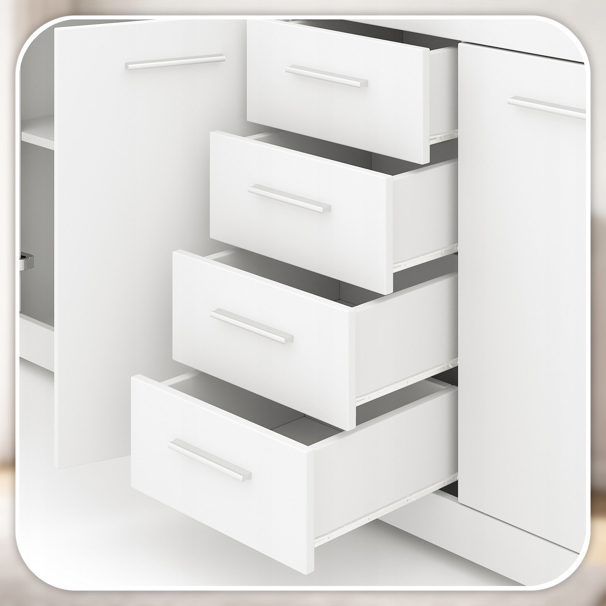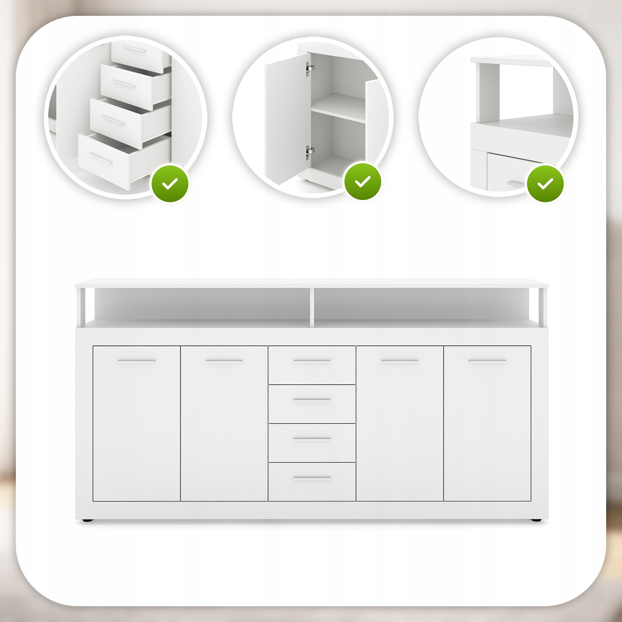 Komoda z Szufladami Do Salonu Przedpokoju Biała LUNA 190 cm ⭐⭐⭐⭐⭐