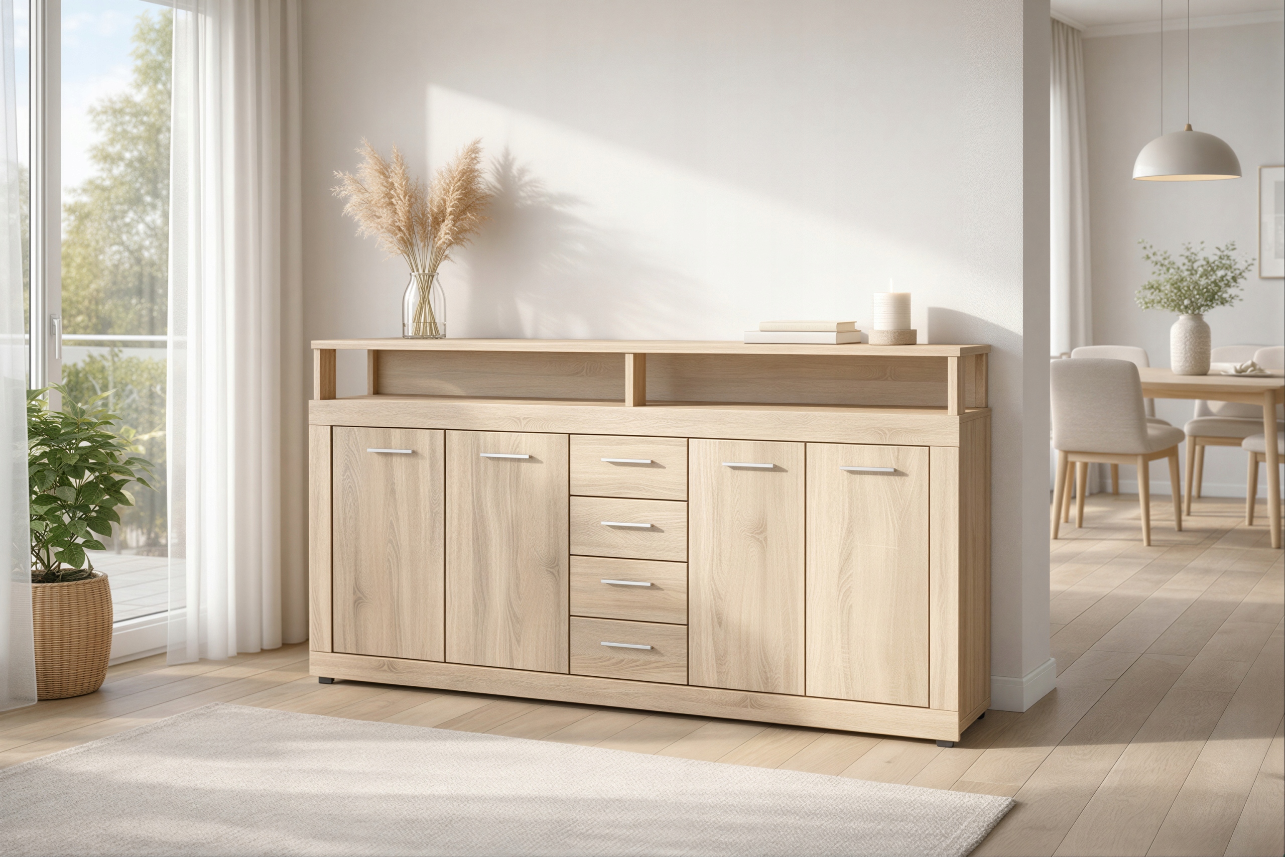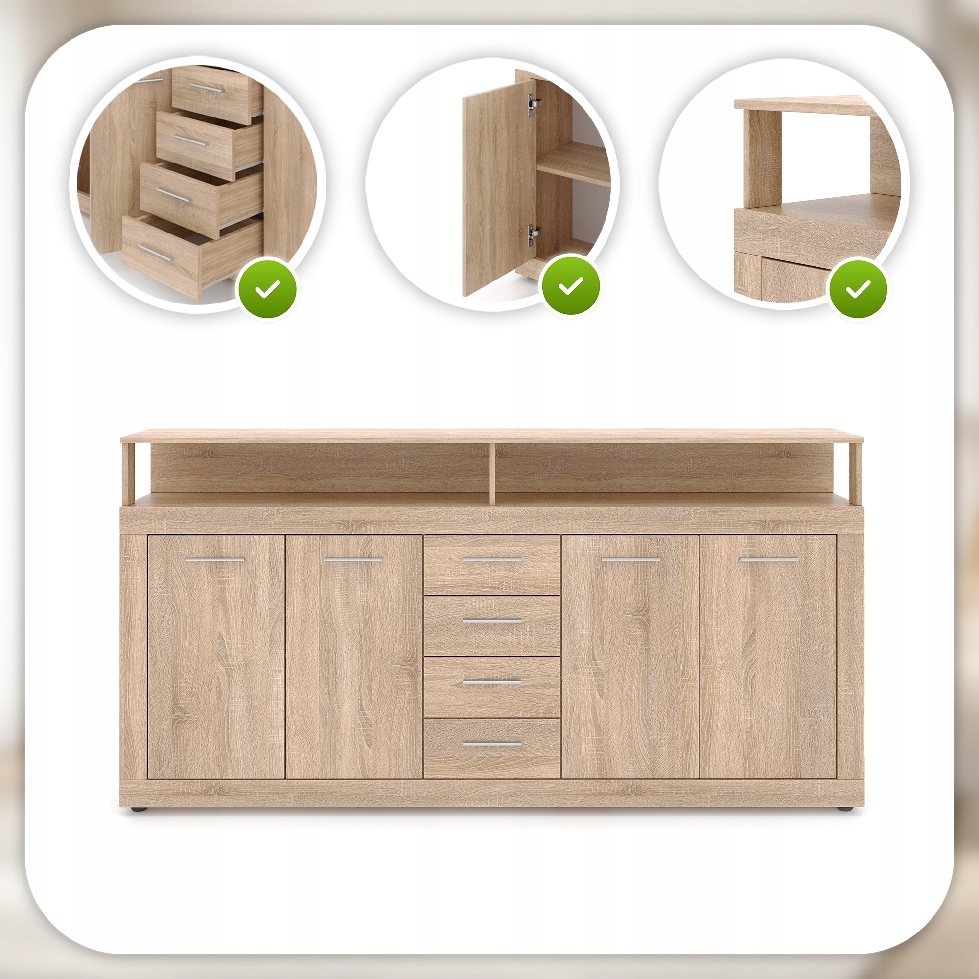 Komoda z Szufladami Do Salonu Przedpokoju Sonoma LUNA 190 cm ⭐⭐⭐⭐⭐