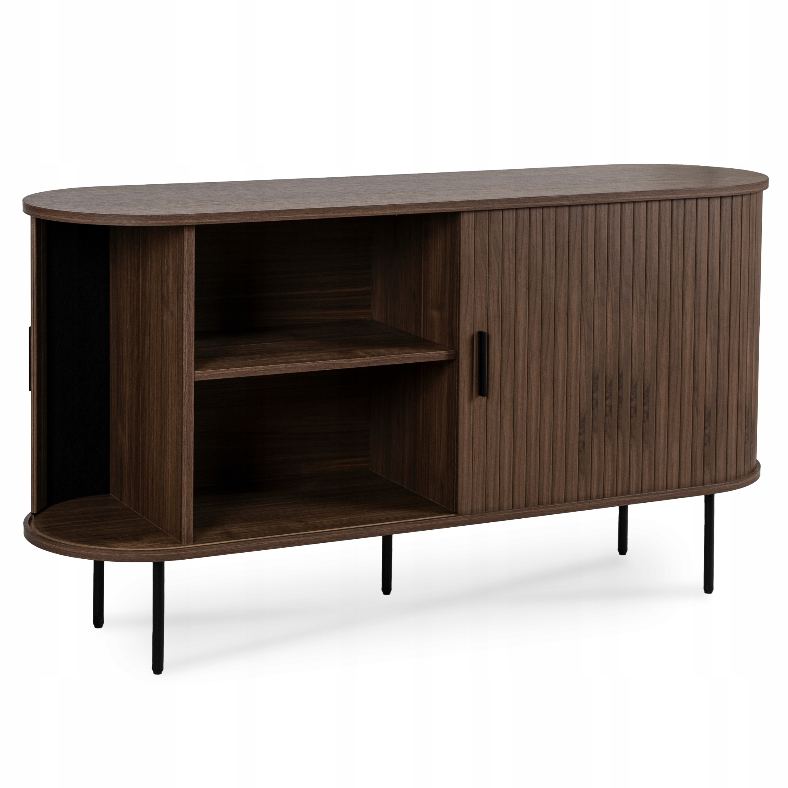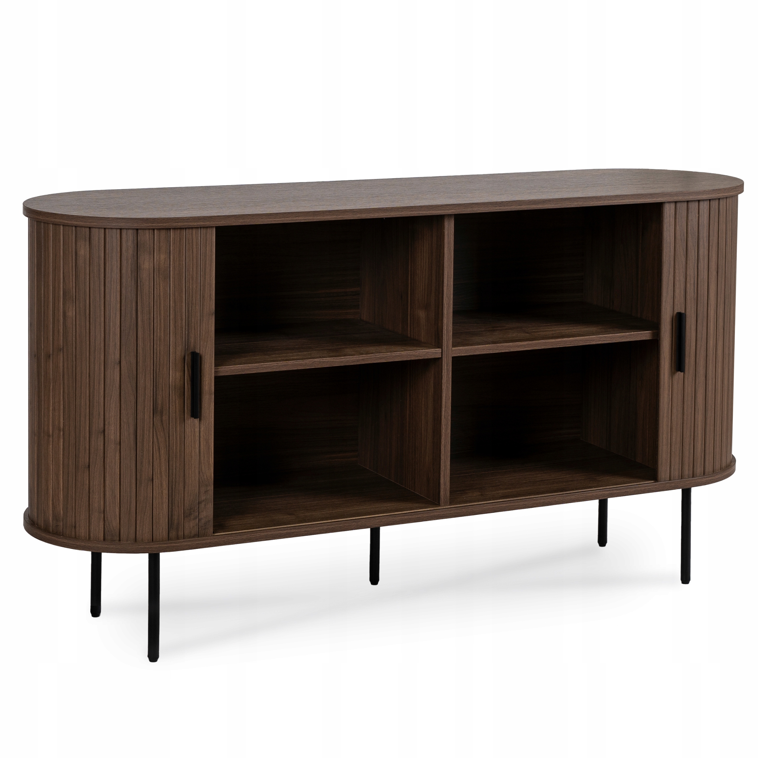 Do dyspozycji są cztery schowki frontowe oraz dwa boczne, a rozsuwane drzwi są wygodne i sprawiają, że komoda jest nie tylko stylowa, ale i funkcjonalna.