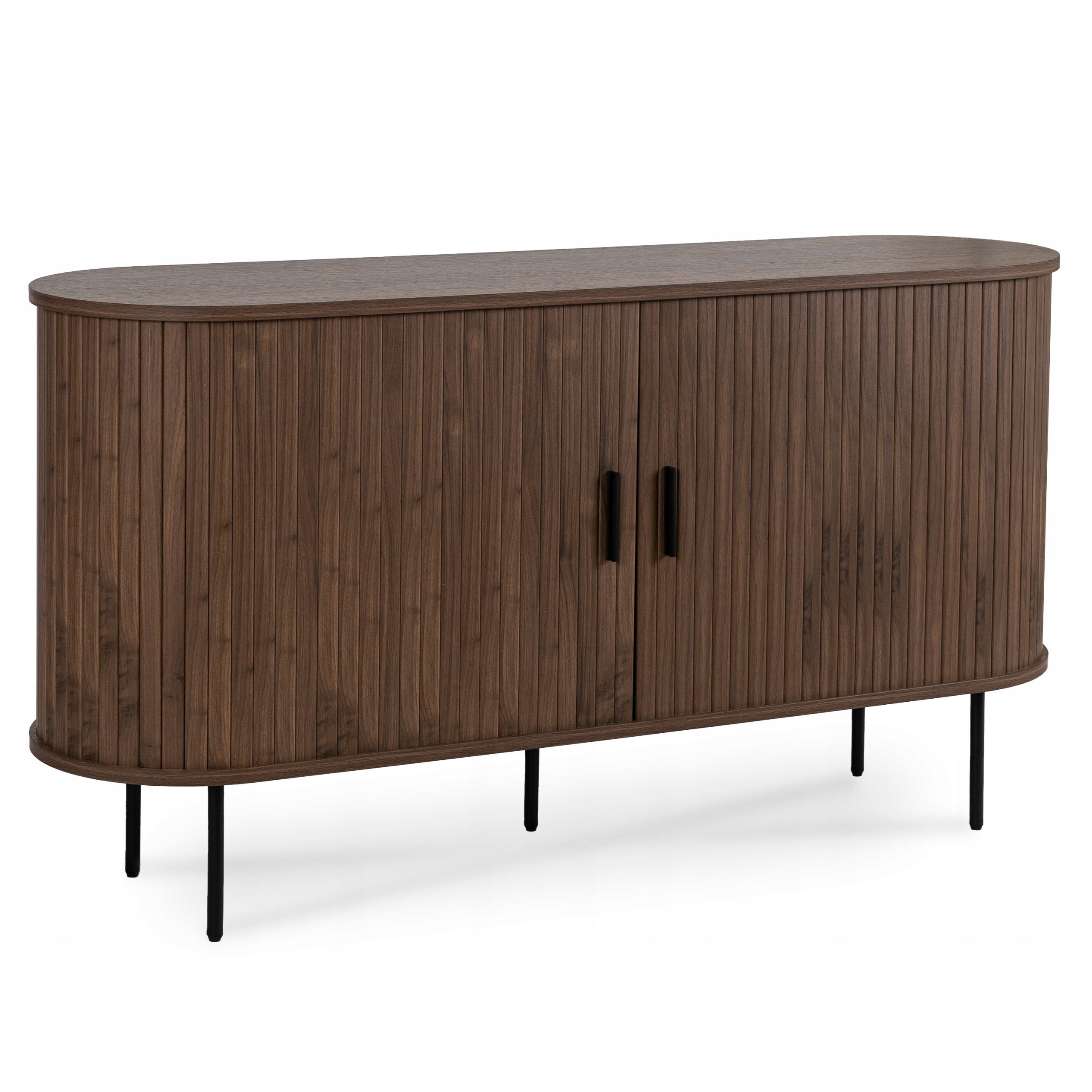 Komoda o wymiarach 140 x 40 x 76 cm to nowoczesny i funkcjonalny mebel idealny do salonu, sypialni. Jej design podkreślają stylowe lamele oraz zaokrąglone boki. Loftowego charakteru nadają metalowe nóżki i uchwyty.