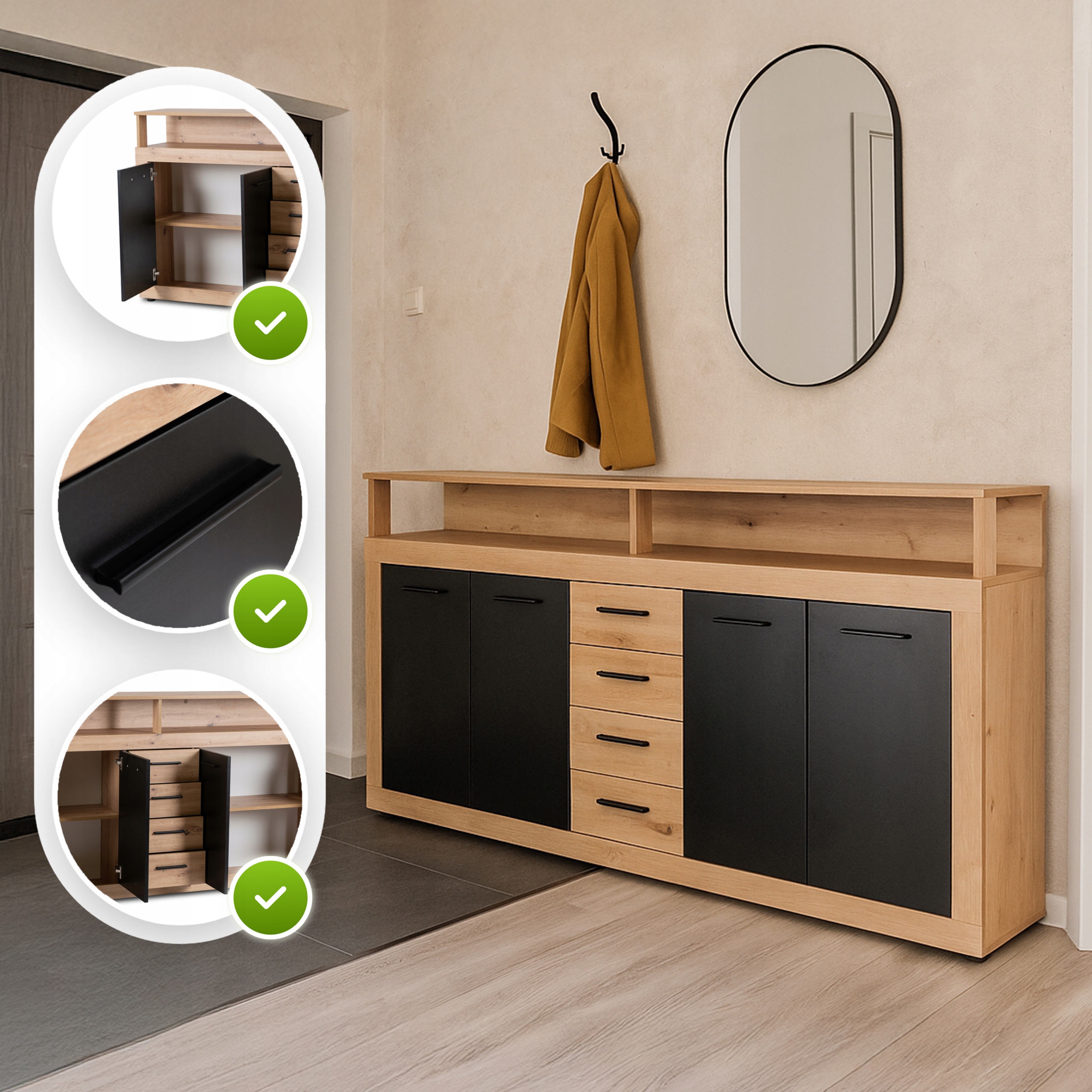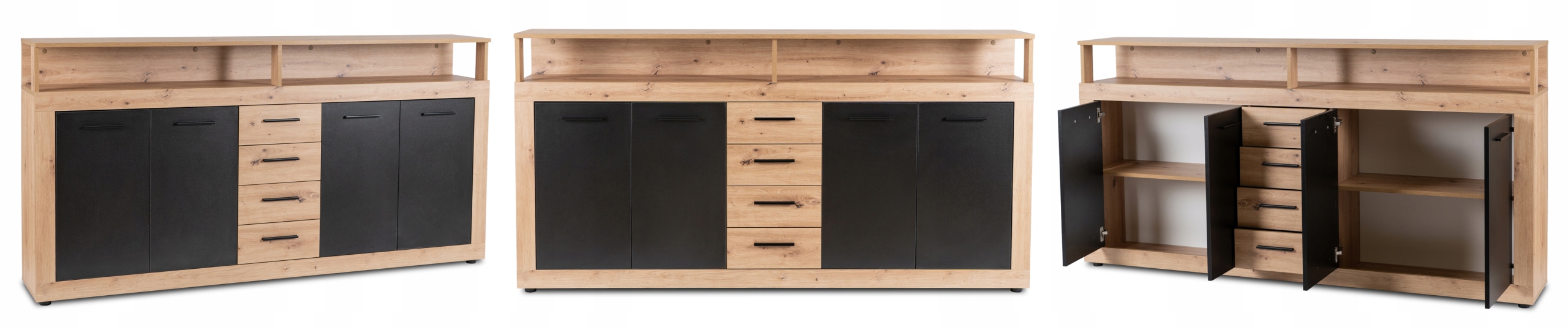 Komoda z Szufladami Duża Do Salonu Przedpokoju Artisan Czarny BLAGO 190 cm