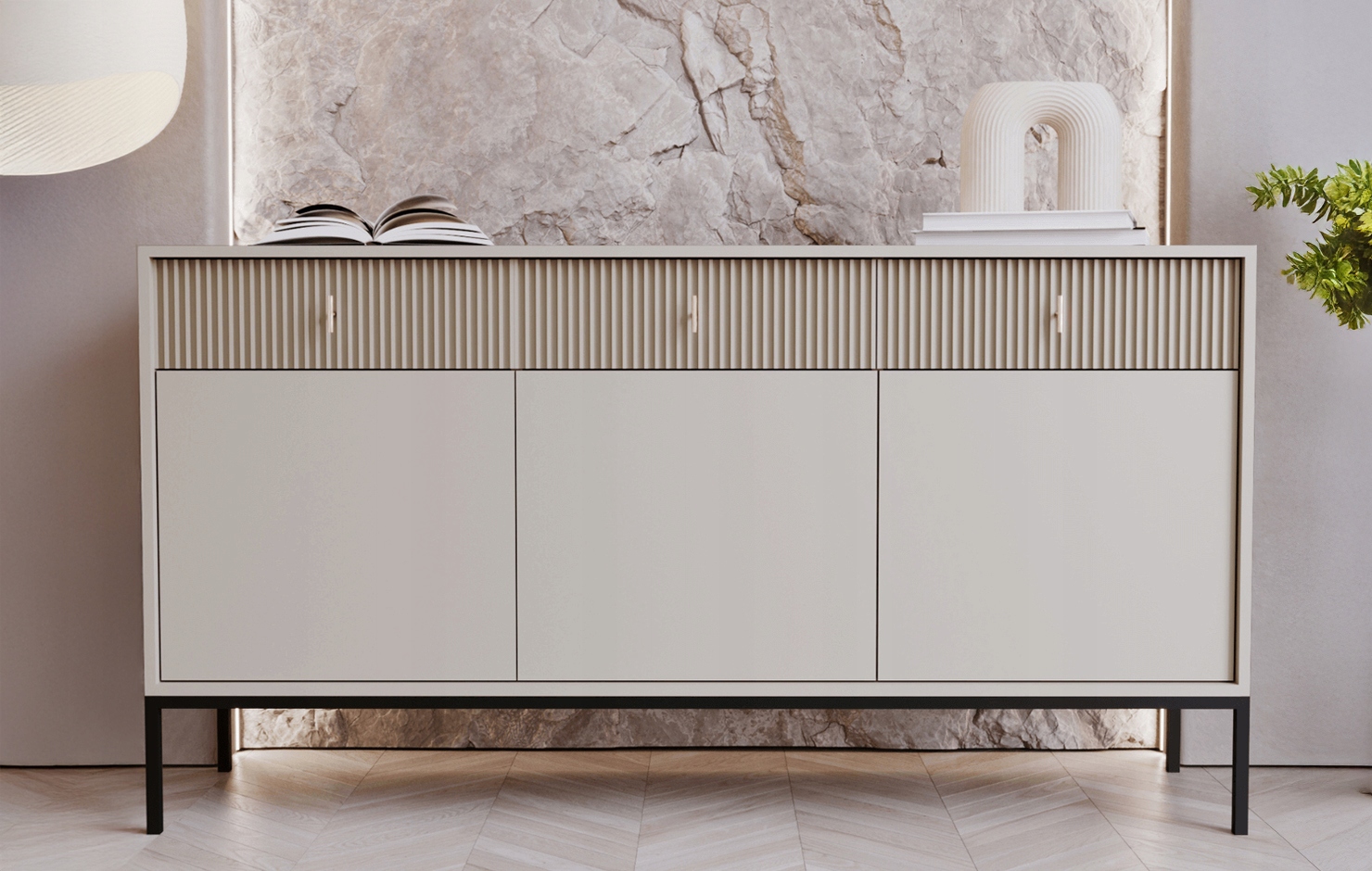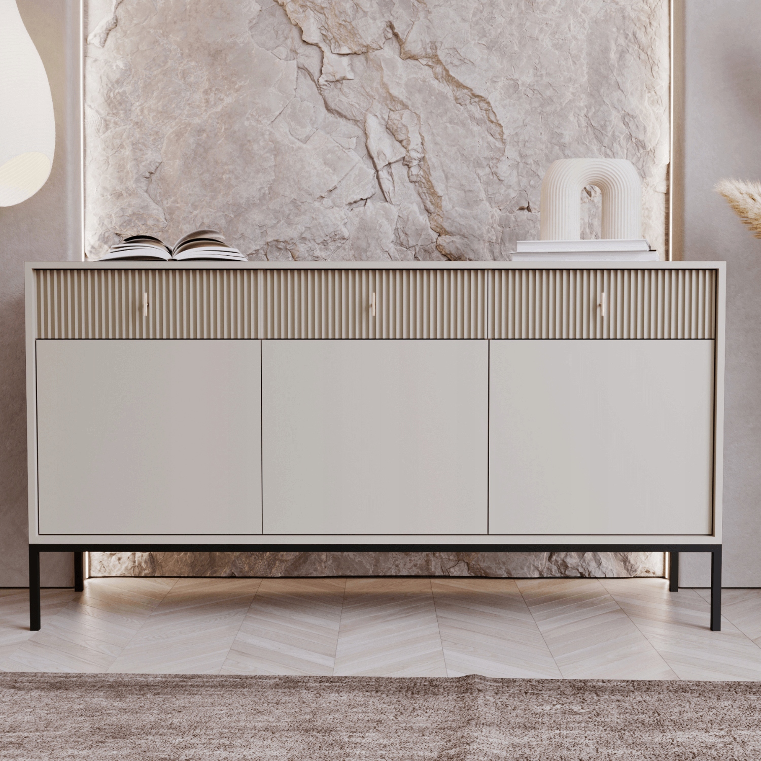 Komoda z Szufladami Duża Do Salonu Sypialni Ryflowana Kaszmir MARCOS 154 cm ⭐⭐⭐⭐⭐