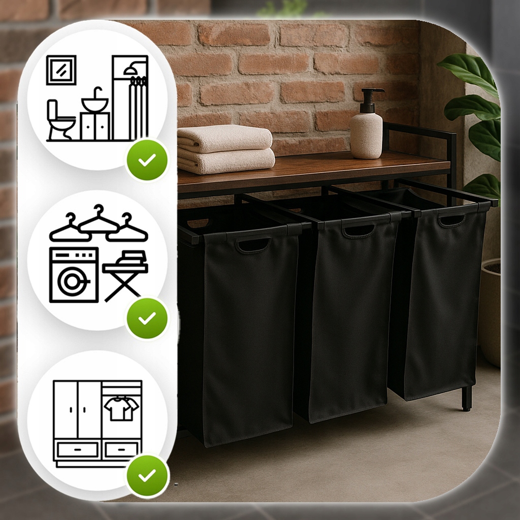 - 3 wyjmowane worki na pranie – ułatwiają segregację i transport ubrań.