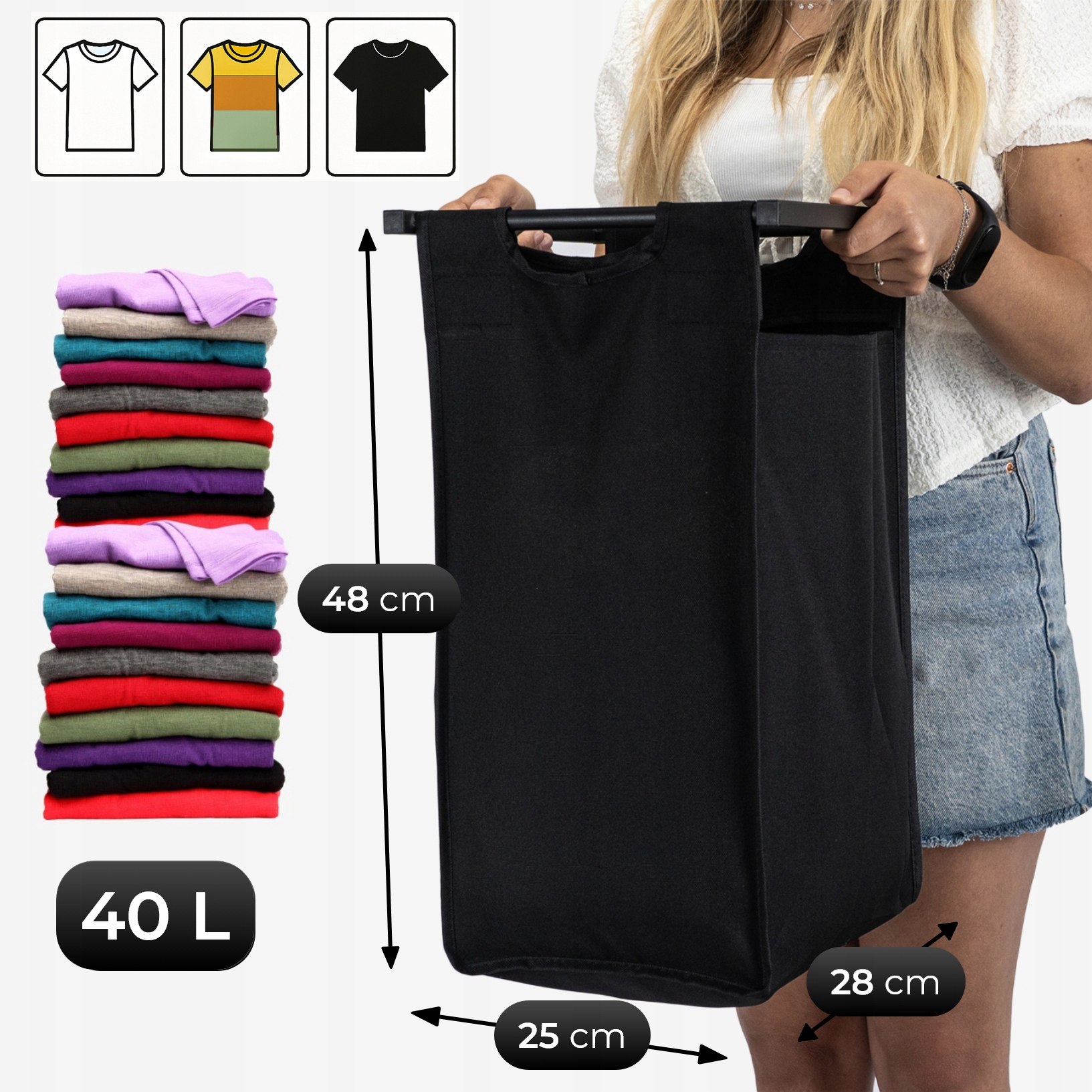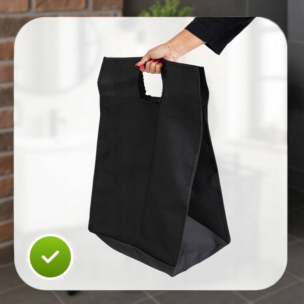 Uchwyty w górnej części torby sprawiają, że przenoszenie prania staje się lekkie i wygodne. To idealne rozwiązanie dla tych, którzy cenią praktyczność i porządek bez zbędnych akcesoriów.