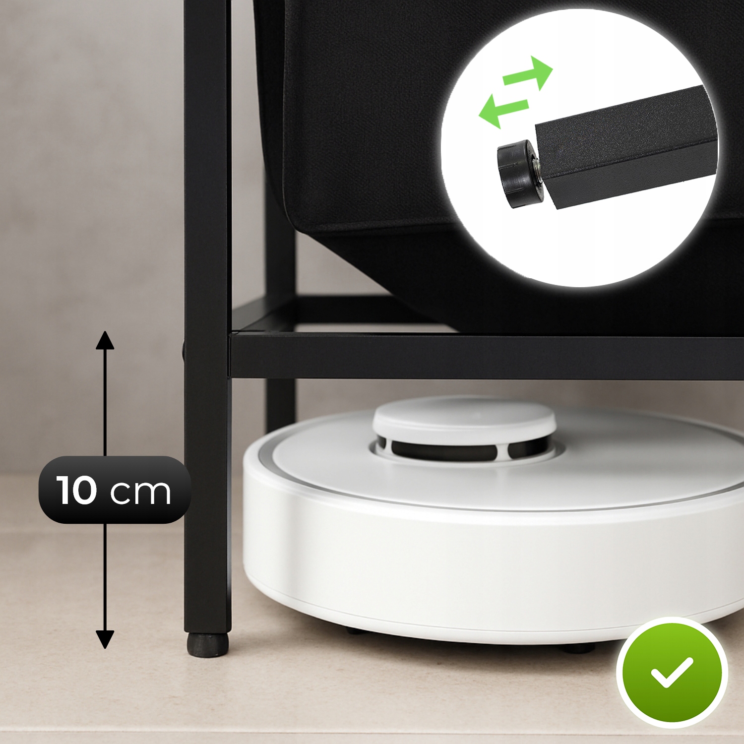 Kosz na pranie KAI posiada 10 cm prześwitu, co sprawia, że roboty sprzątające swobodnie wjeżdżają pod spód, dokładnie czyszcząc przestrzeń pod meblem – bez konieczności jego przesuwania.