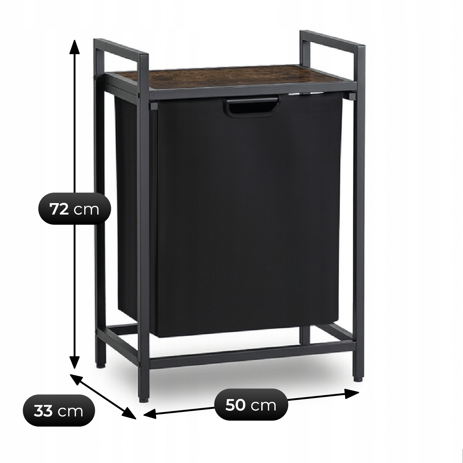 Kosz na pranie KAI to praktyczne i estetyczne rozwiązanie dla każdego wnętrza, które łączy rustykalny design z loftowym charakterem. 65 litrów pojemności, co przekłada się na ok. 3 pełne wsady pralki. Kosz wyposażony jest w wyciąganą torbę z rzepami, która jest łatwa w przenoszeniu i odporna na wilgoć. Stabilna stalowa konstrukcja i blat z efektem drewna pozwalają wykorzystać górną część jako praktyczną półkę.