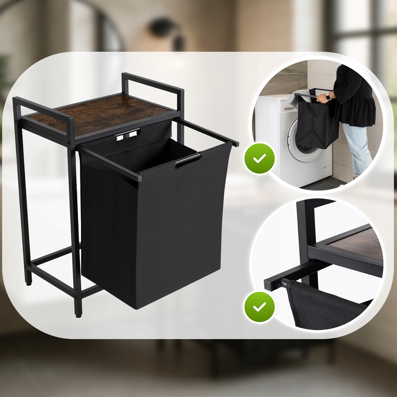 Dzięki praktycznemu systemowi wysuwania worka, nie musisz już używać osobnych misek, koszy czy pojemników do przenoszenia brudnych ubrań. Wyjmowany i pojemny worek można wygodnie wysunąć, chwycić za uchwyty i zanieść bezpośrednio do pralki.