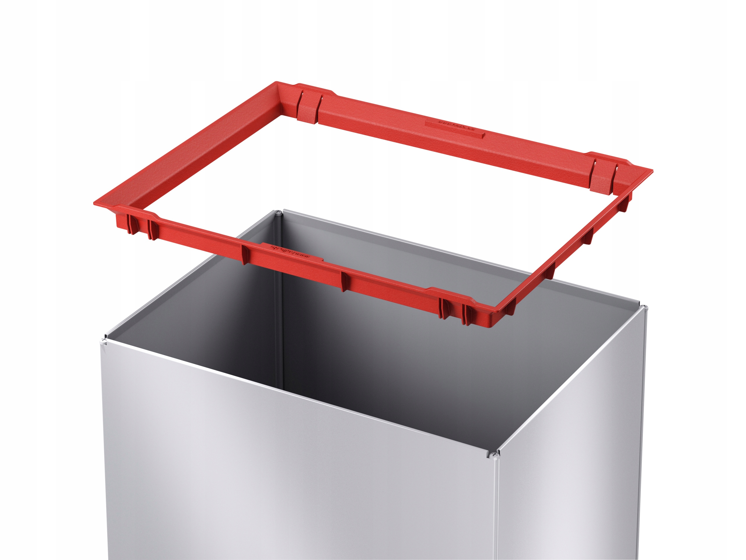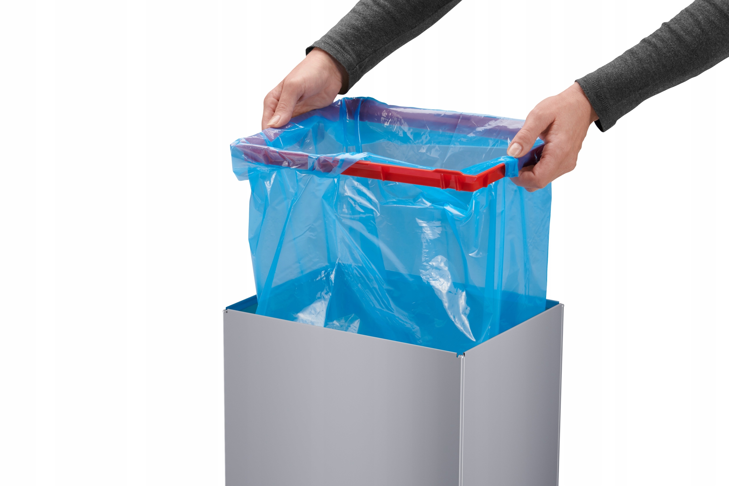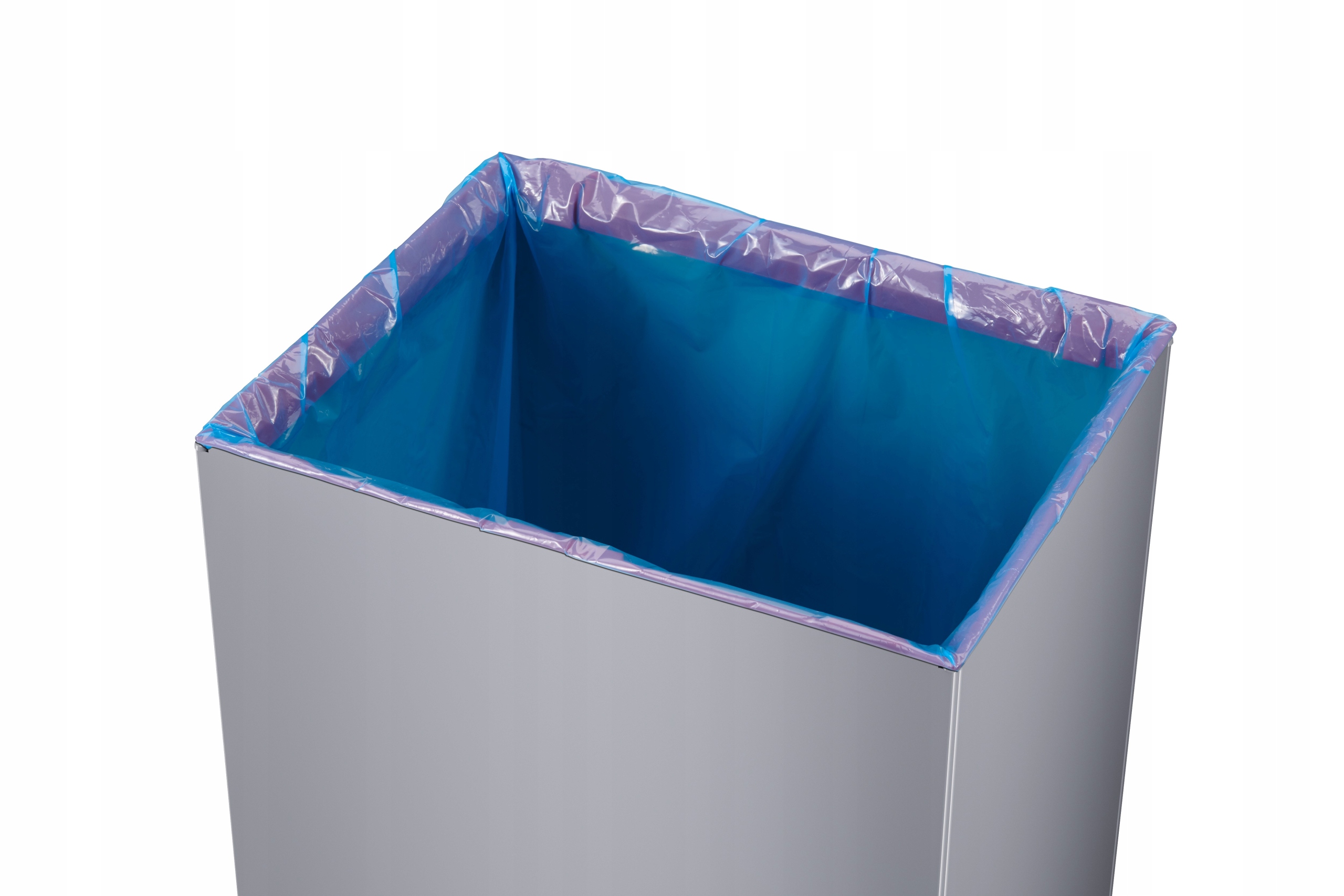 Duży kosz na odpady z samozamykającą się wahadłową pokrywą.
