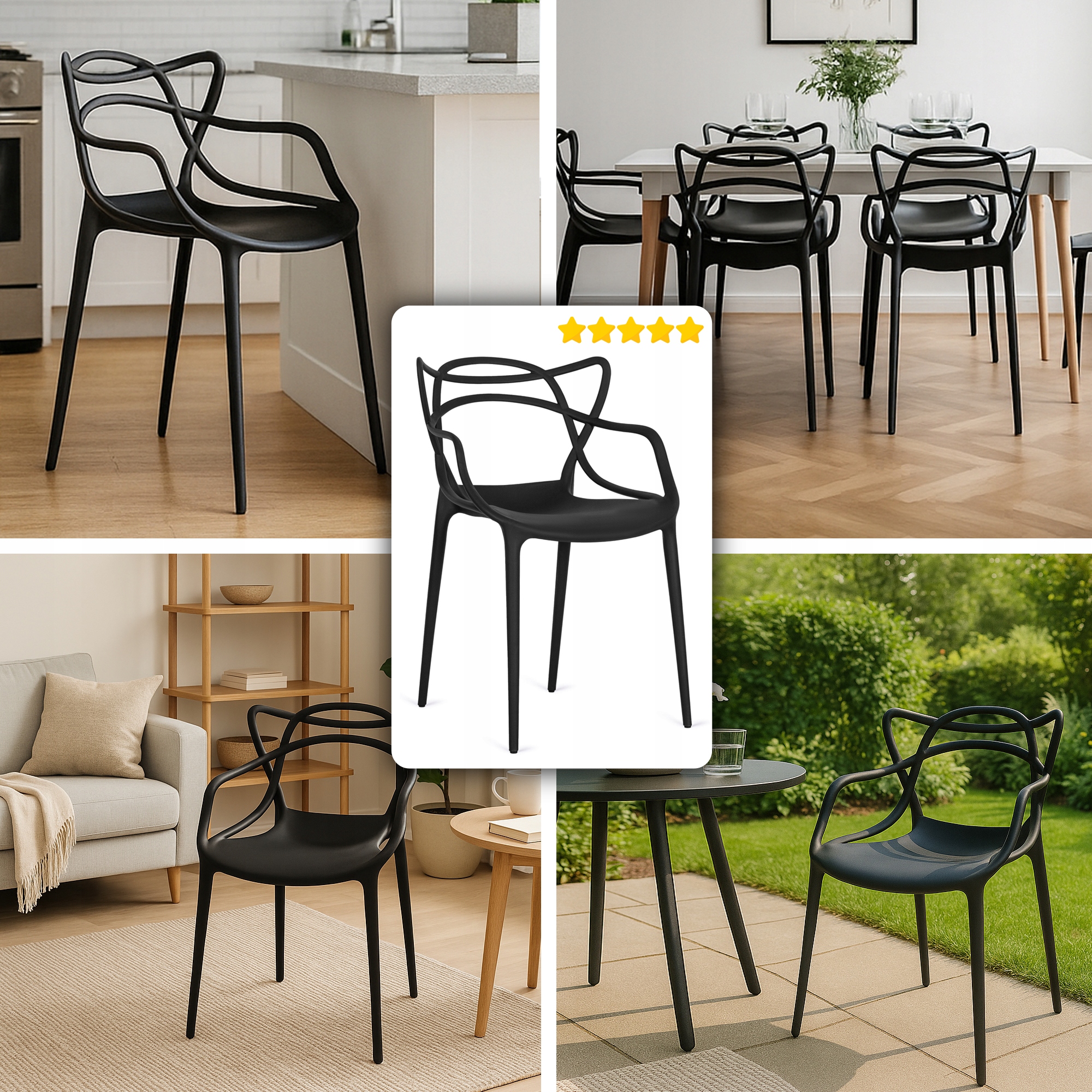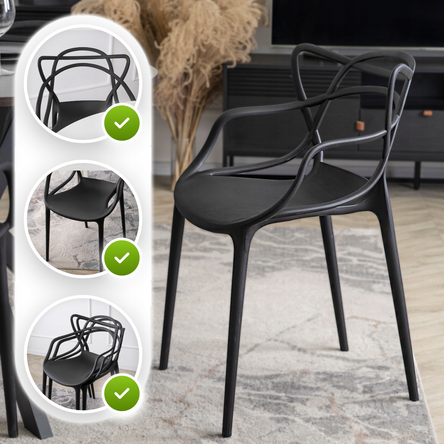 ✨ Krzesło Ażurowe Nowoczesne do Kuchni Jadalni Salonu Czarne CELTIC