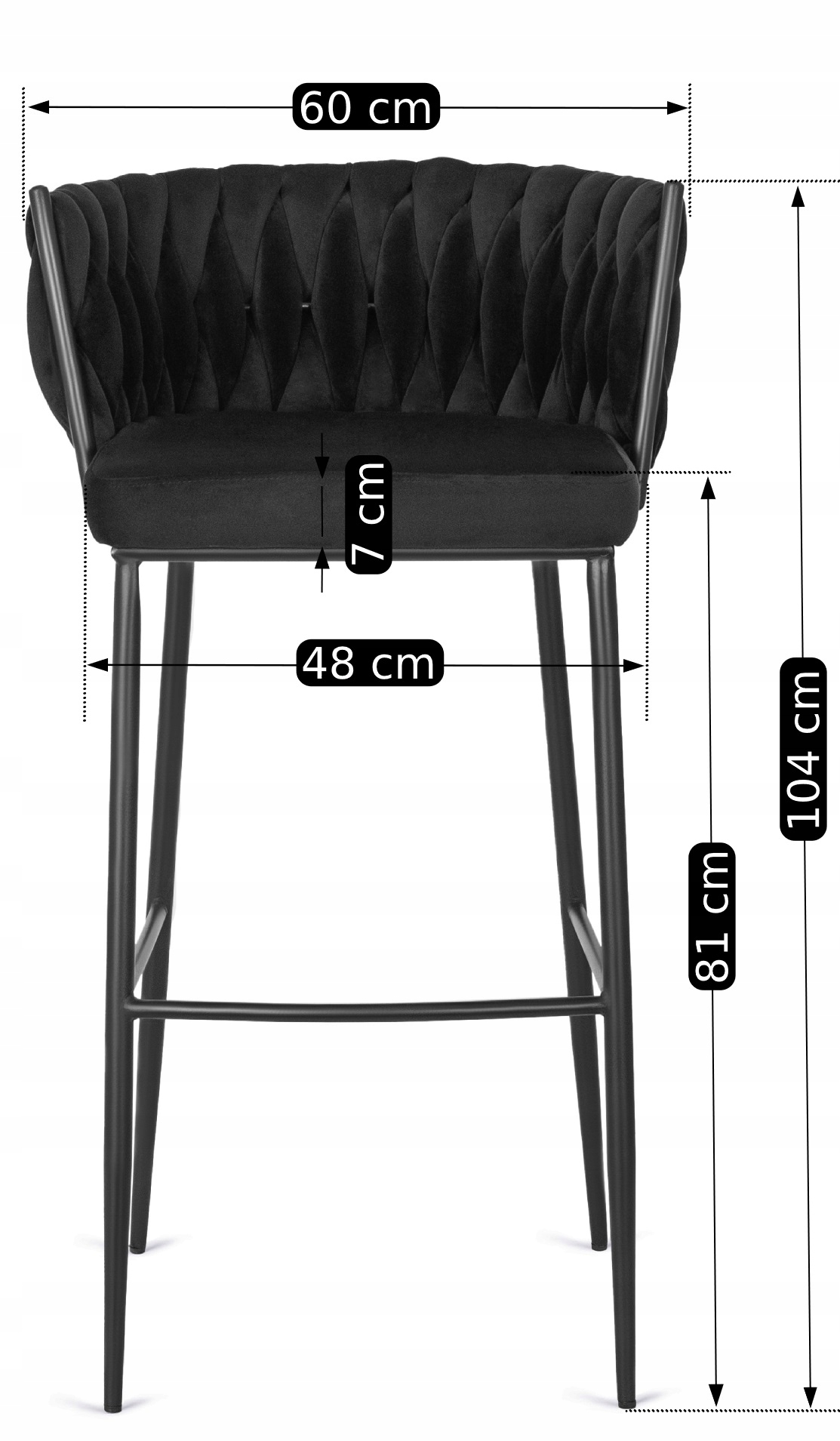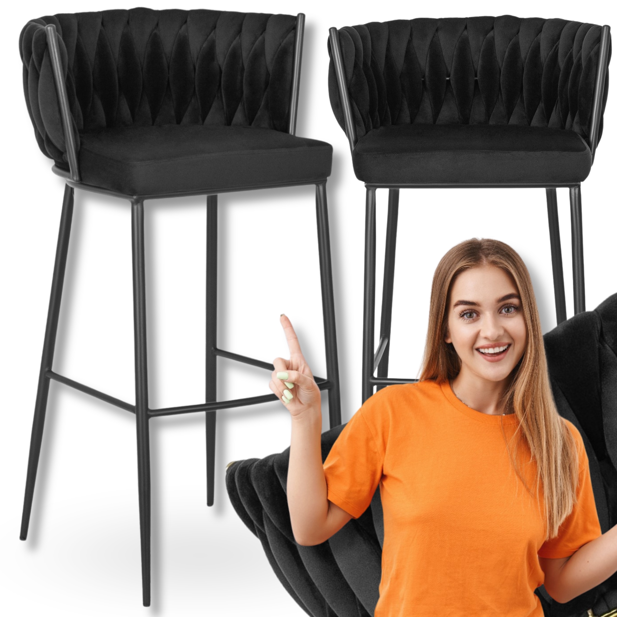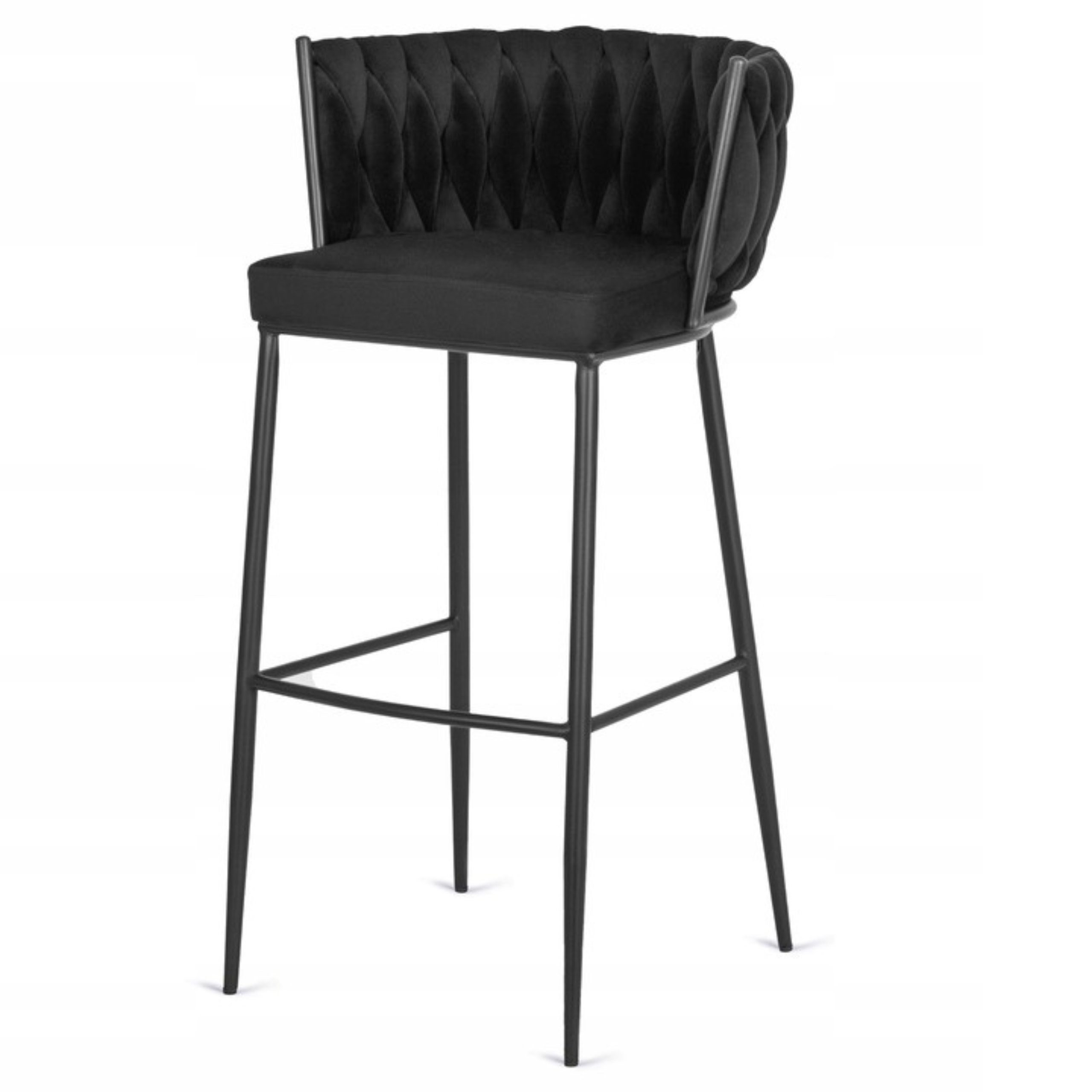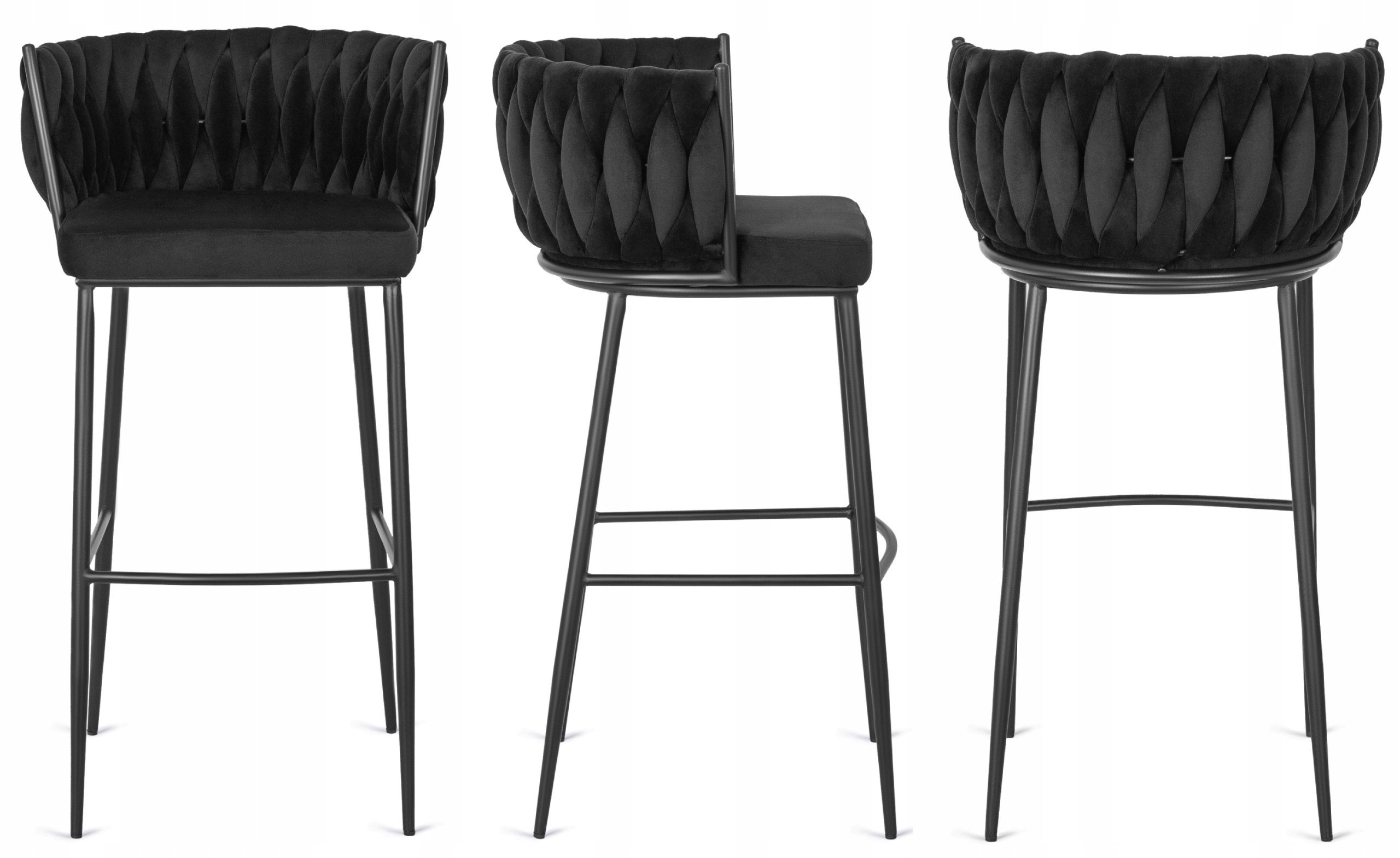Hoker Krzesło Barowe Z Oparciem Loft Plecionka Welurowy Czarny FLORES ⭐⭐⭐⭐⭐