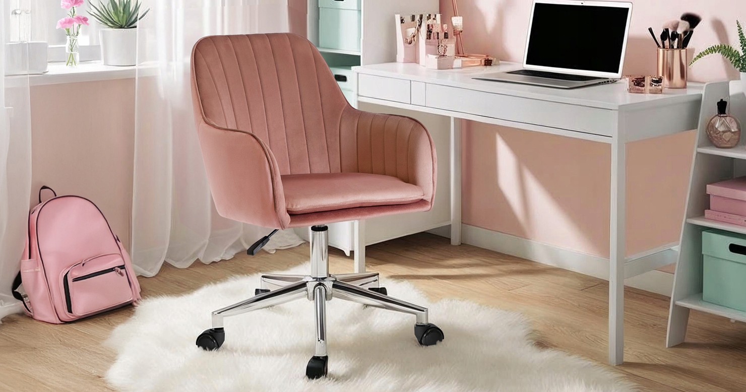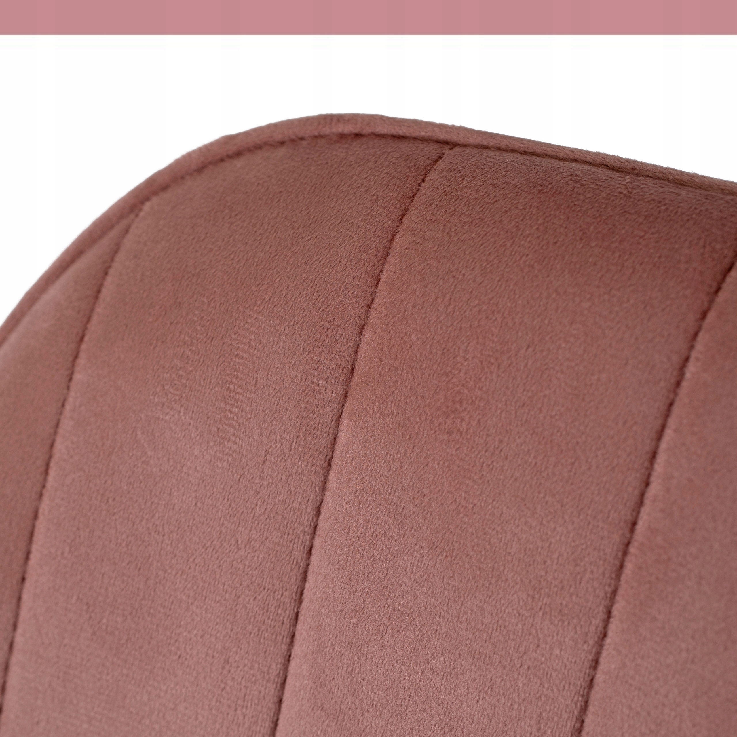 Ten uroczy fotel obrotowy to idealny dodatek do pokoju dziecięcego. Jego welurowa tapicerka w odcieniu pudrowego różu tworzy przytulną, dziewczęcą atmosferę. Kształt oparcia oraz subtelne przeszycia sprawiają, że fotel wygląda stylowo i pięknie.