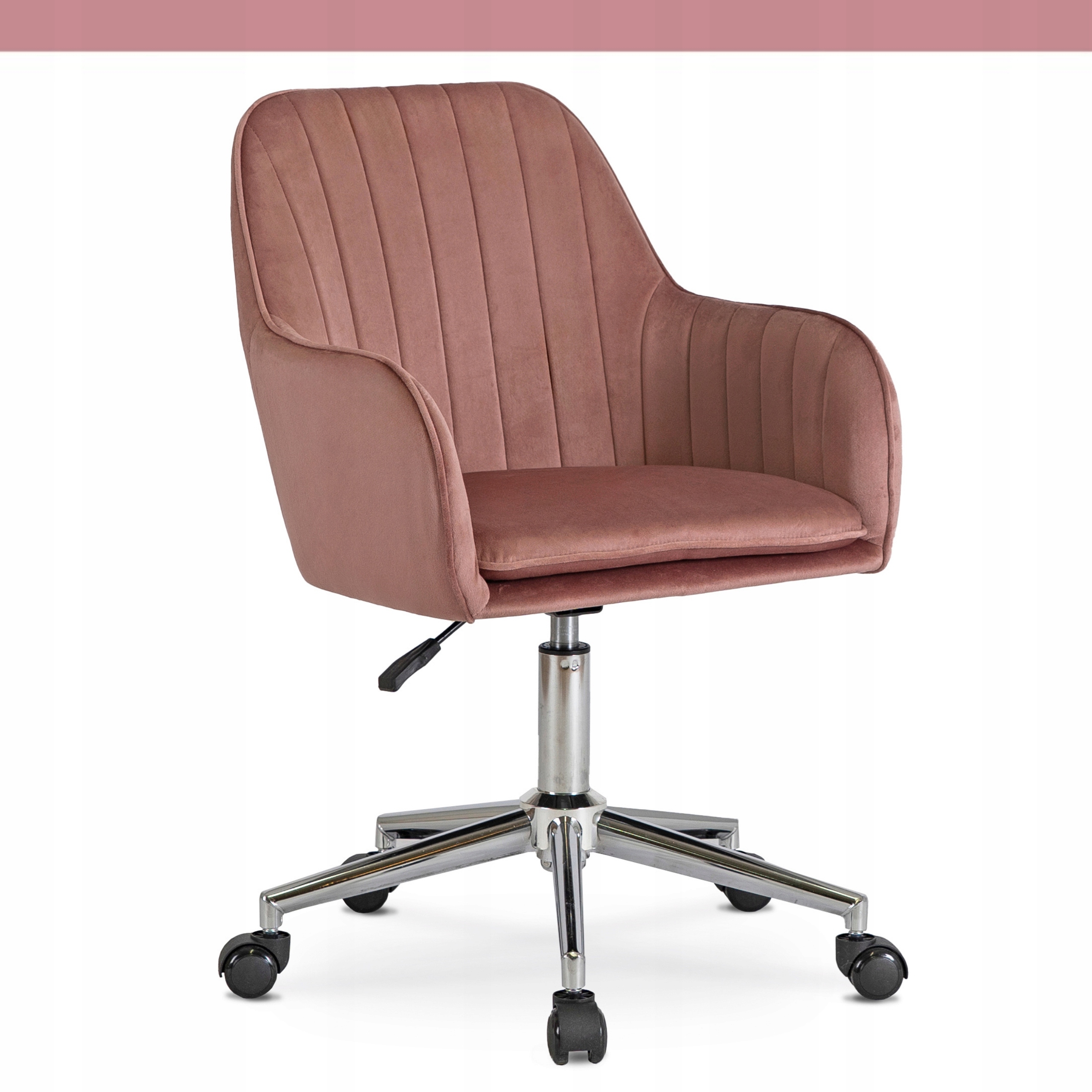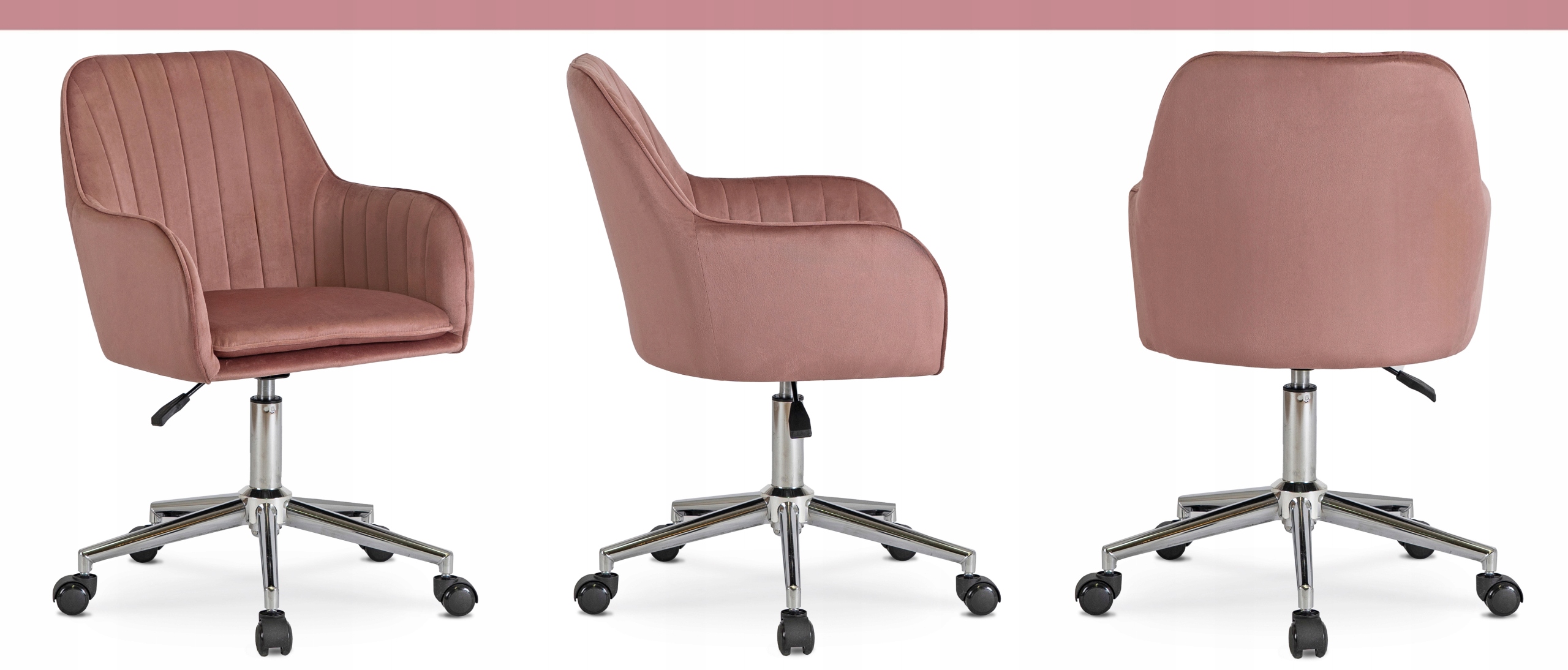 - Fotel welurowy obrotowy TOM w kolorze różowym z chromowanym krzyżakiem