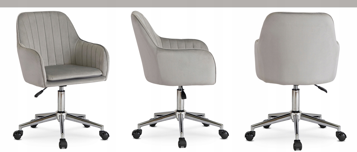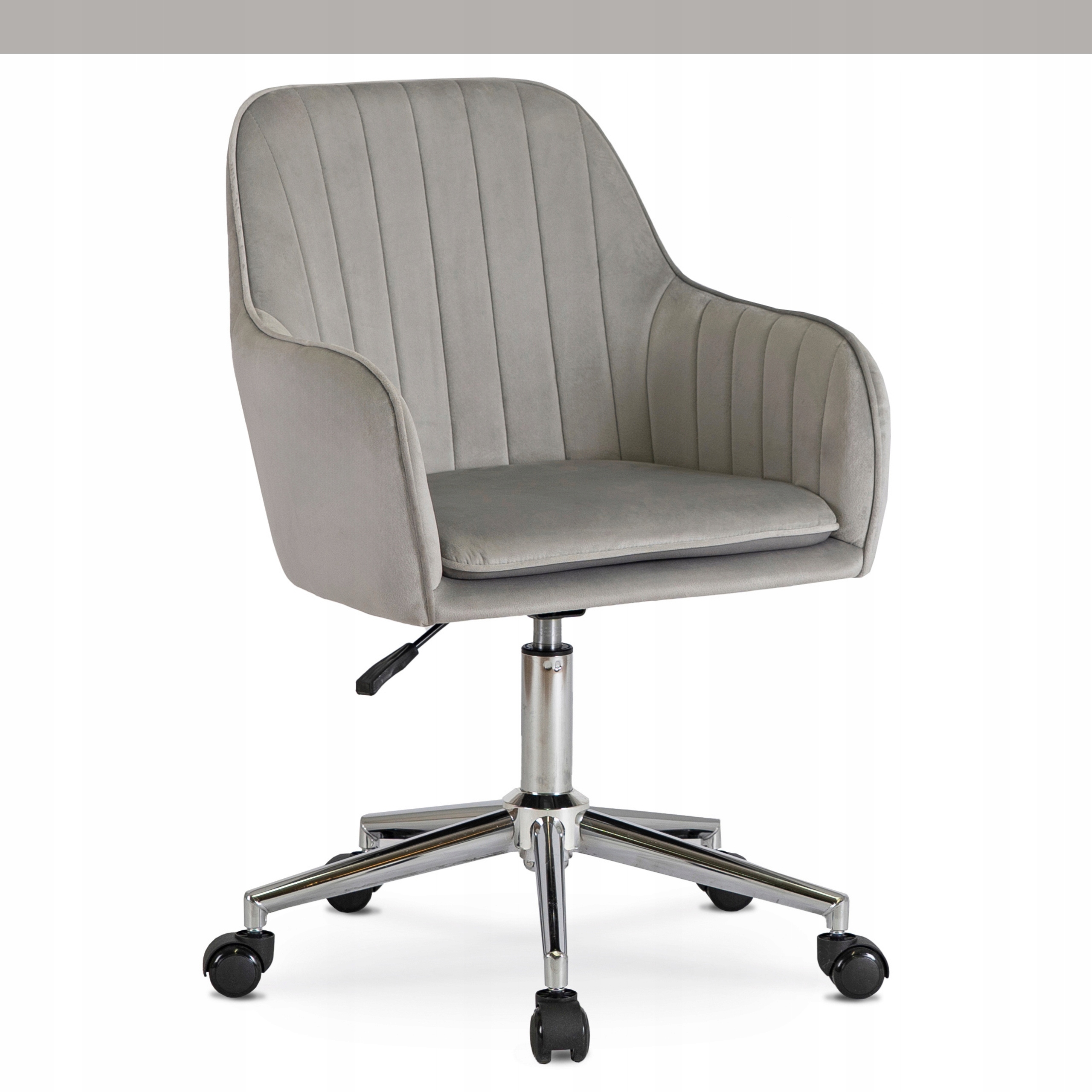 - Fotel welurowy obrotowy TOM w kolorze szarym z chromowanym krzyżakiem