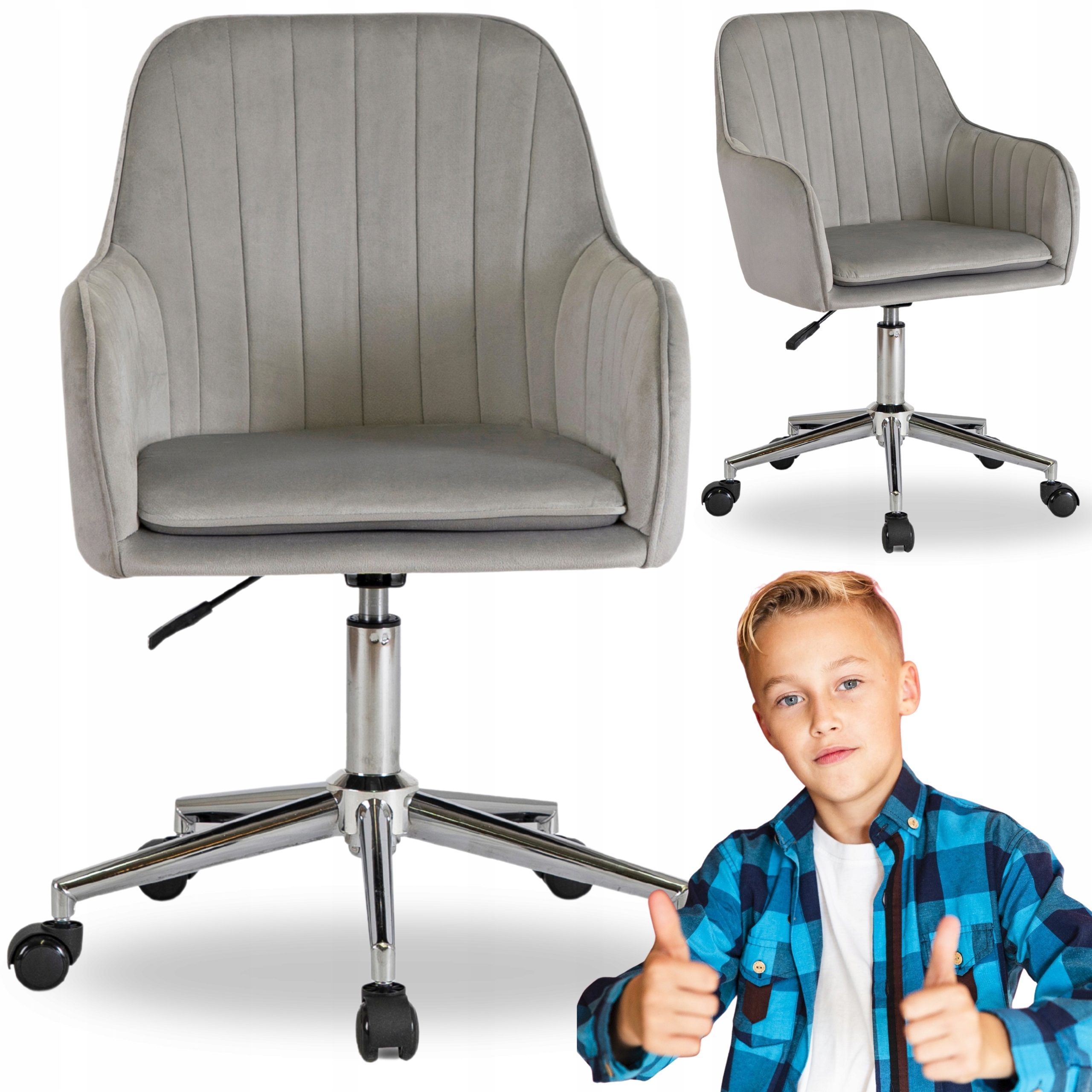 Krzesło Dla Dzieci Obrotowe Fotel Do Biurka Toaletki Welurowe TOM Szary ⭐⭐⭐⭐⭐
