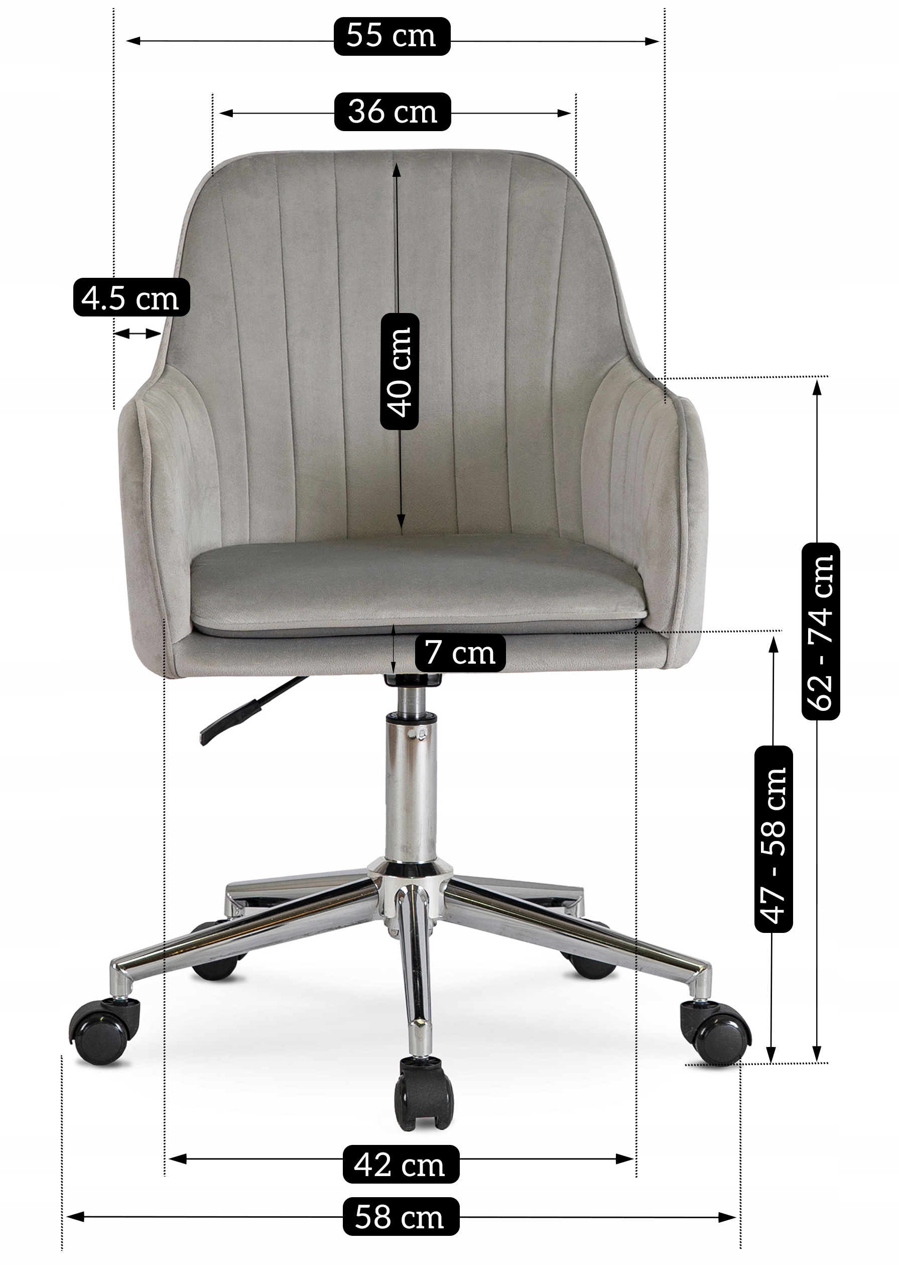 ⭐ Szerokość fotela: 58 cm z krzyżakiem