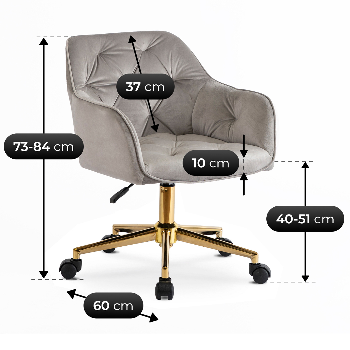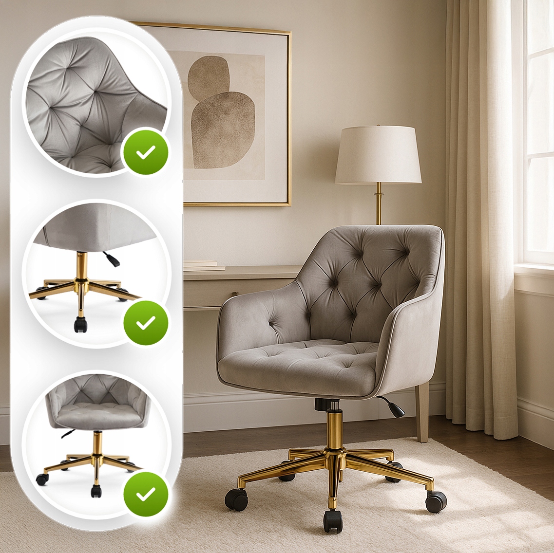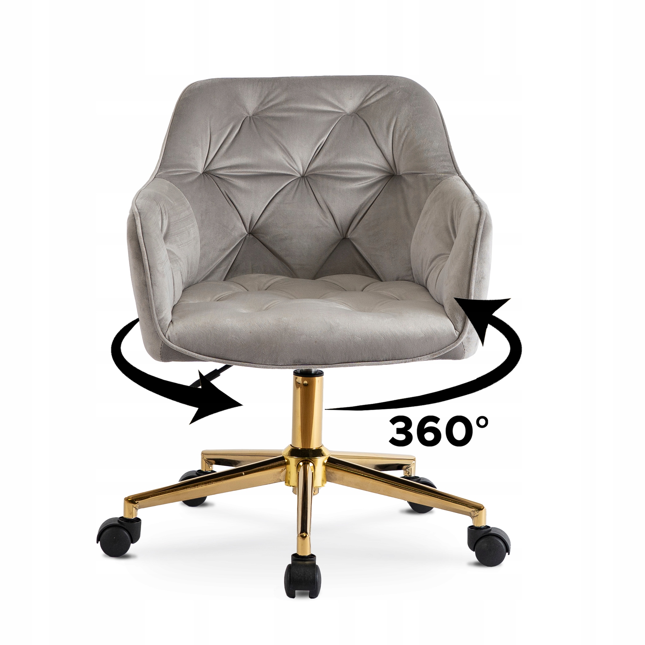 ✨ Krzesło Do Biurka Obrotowe Welurowe Fotel Toaletki Biurowy Szary KONOR