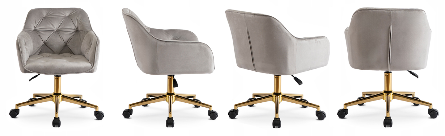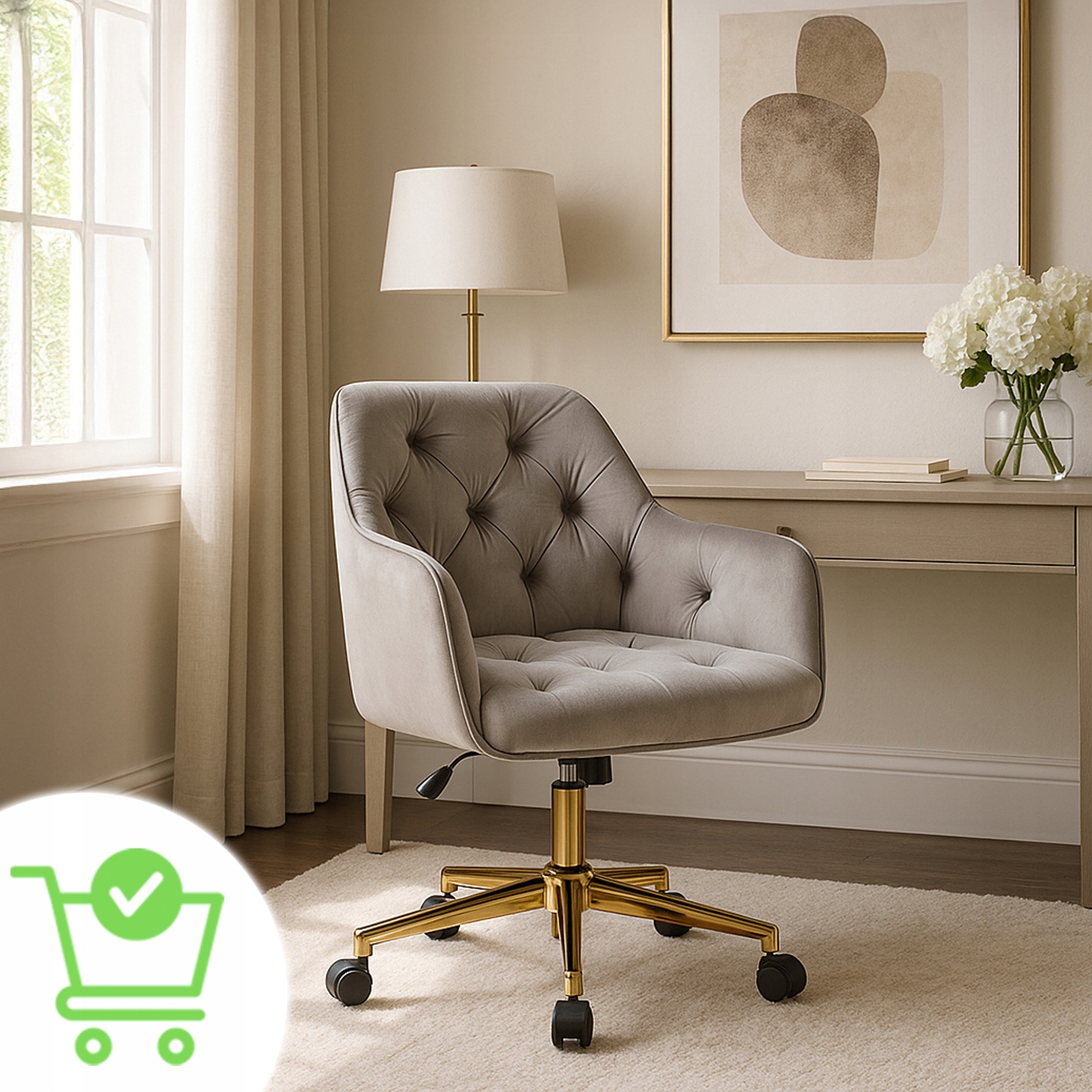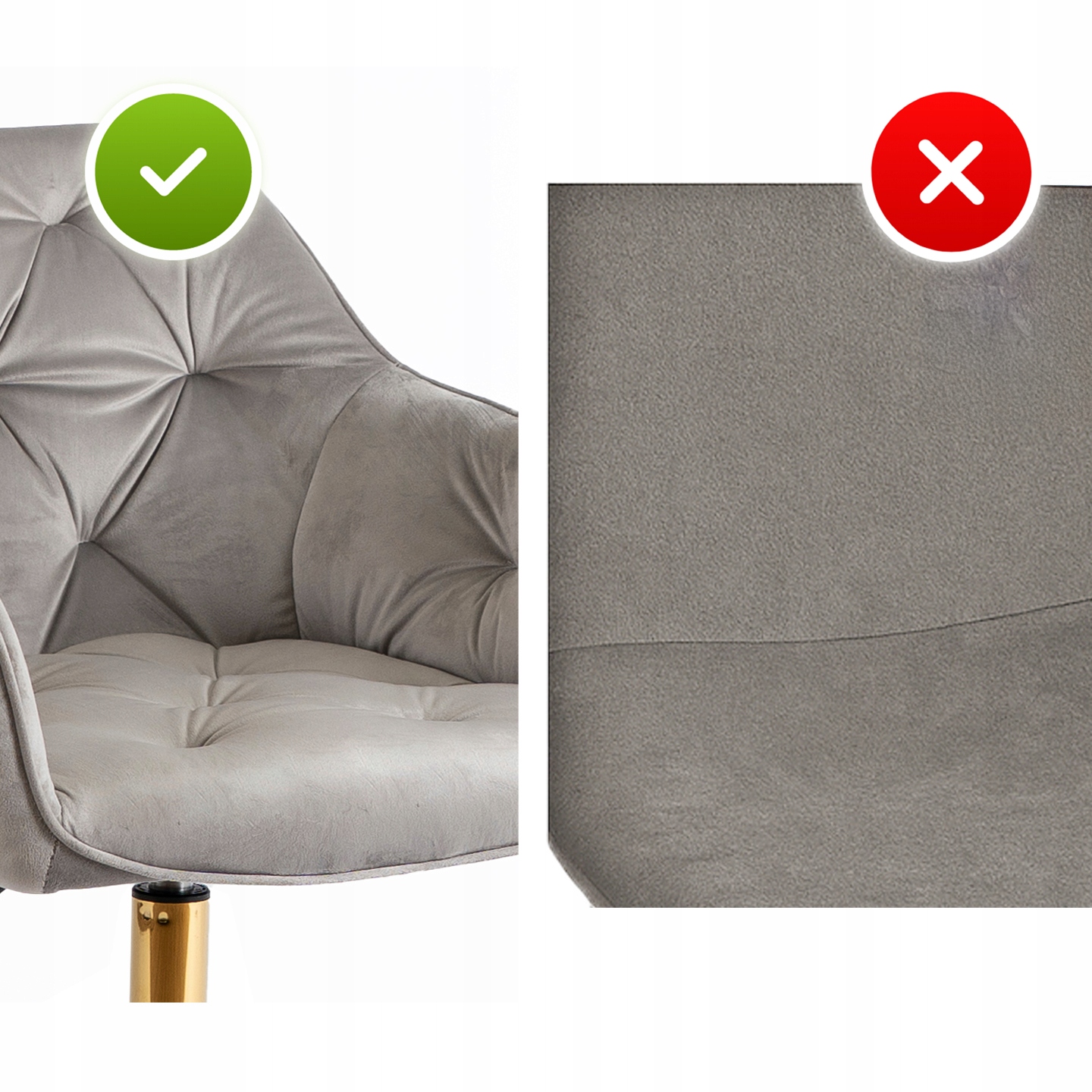 Stylowe krzesło obrotowe z pikowanym oparciem i miękkim welurem to idealny wybór zarówno do domowego biura, jak i do toaletki lub pracowni artystycznej. Regulacja wysokości i wyprofilowane oparcie sprawiają, że siedzenie staje się czystą przyjemnością.