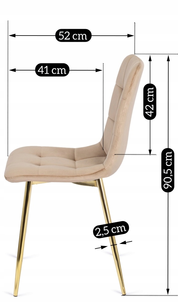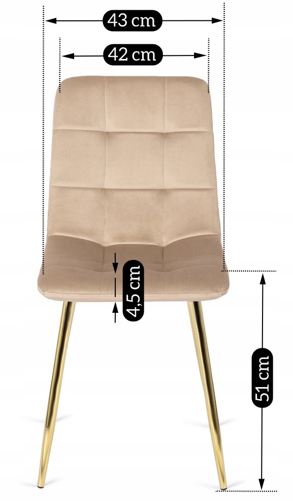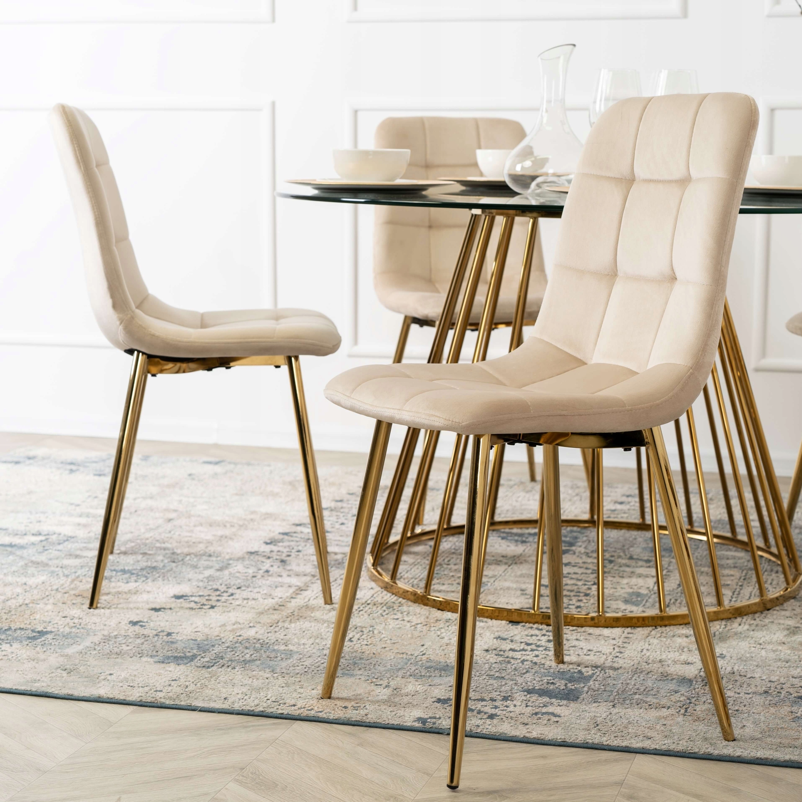 - Krzesło welurowe YORK w kolorze kremowym ze złotymi nogami