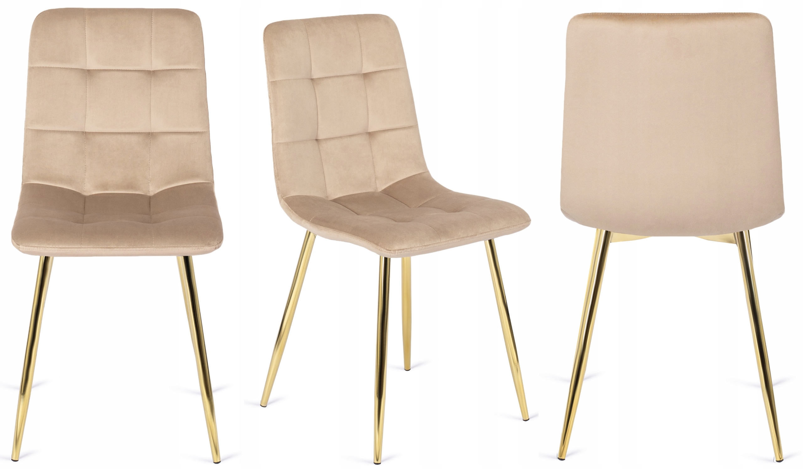 Krzesło Welurowe Jadalnia Glamour Złote Nogi Salon Do Toaletki Beżowe YORK ⭐⭐⭐⭐⭐