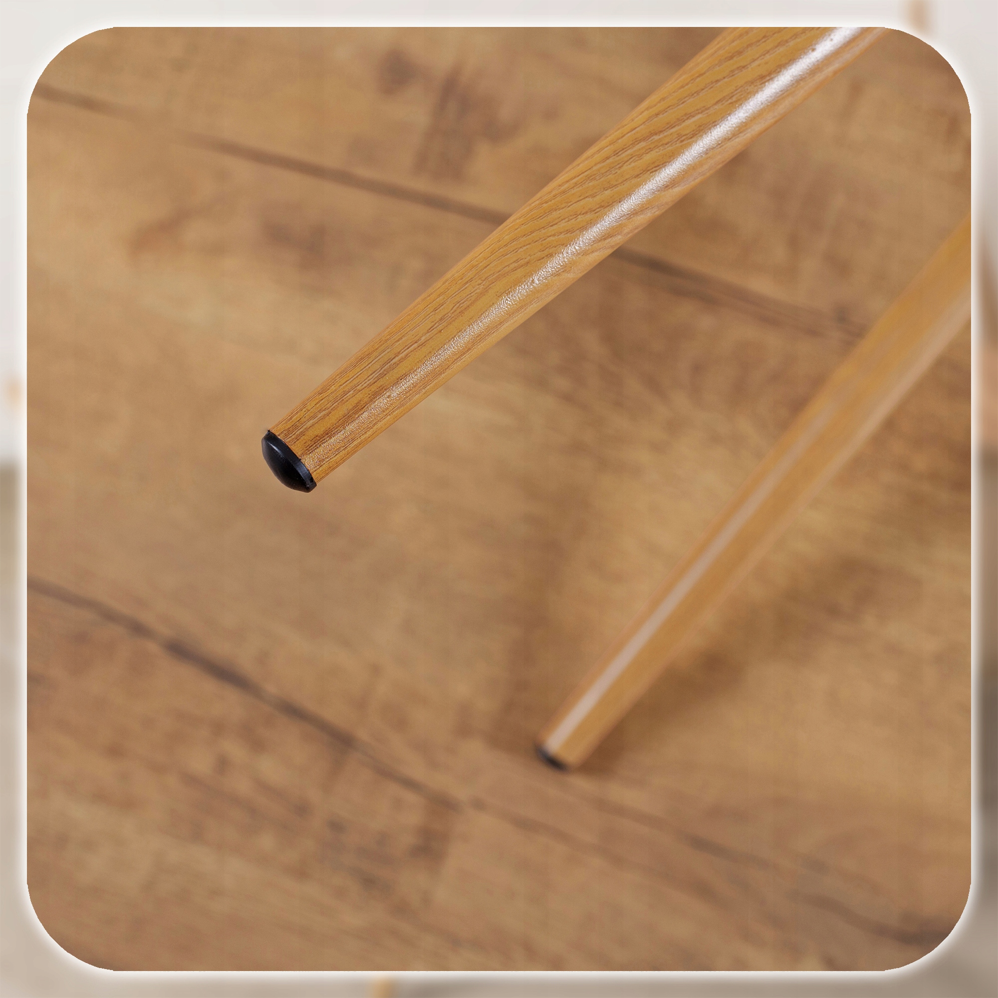 Subtelne nogi są profilowane i delikatnie zwężane ku dołowi. Wykonane zostały z metalu, który pomalowano w taki sposób, aby wyglądały jak naturalne drewno. W ten sposób zyskały większą wytrzymałość i zachowały wysokie walory estetyczne.