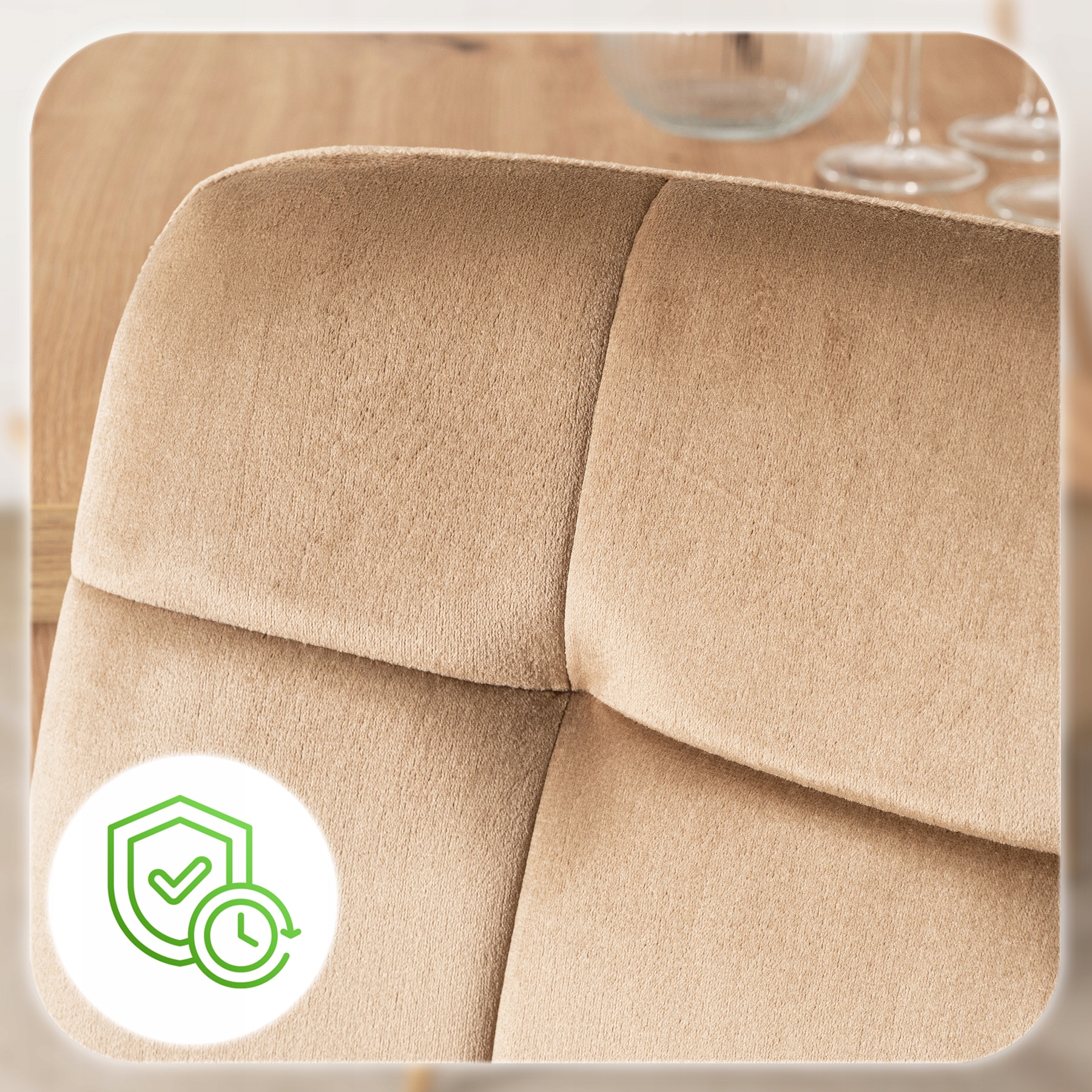 ✅ Estetyka - krzesło zostało obite przyjemną w dotyku tkaniną welurową, a zastosowane pikowanie upiększa tapicerkę, tworząc z nią schludną całość, a jednocześnie stanowi element dekoracyjny.
