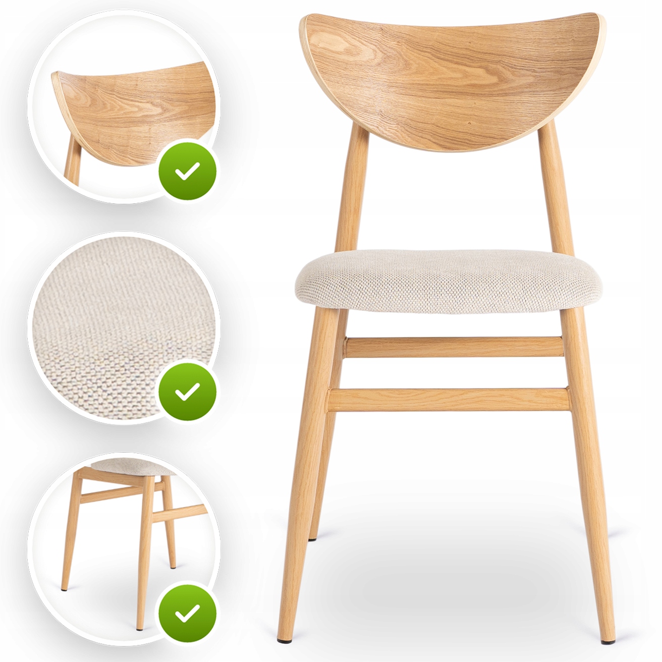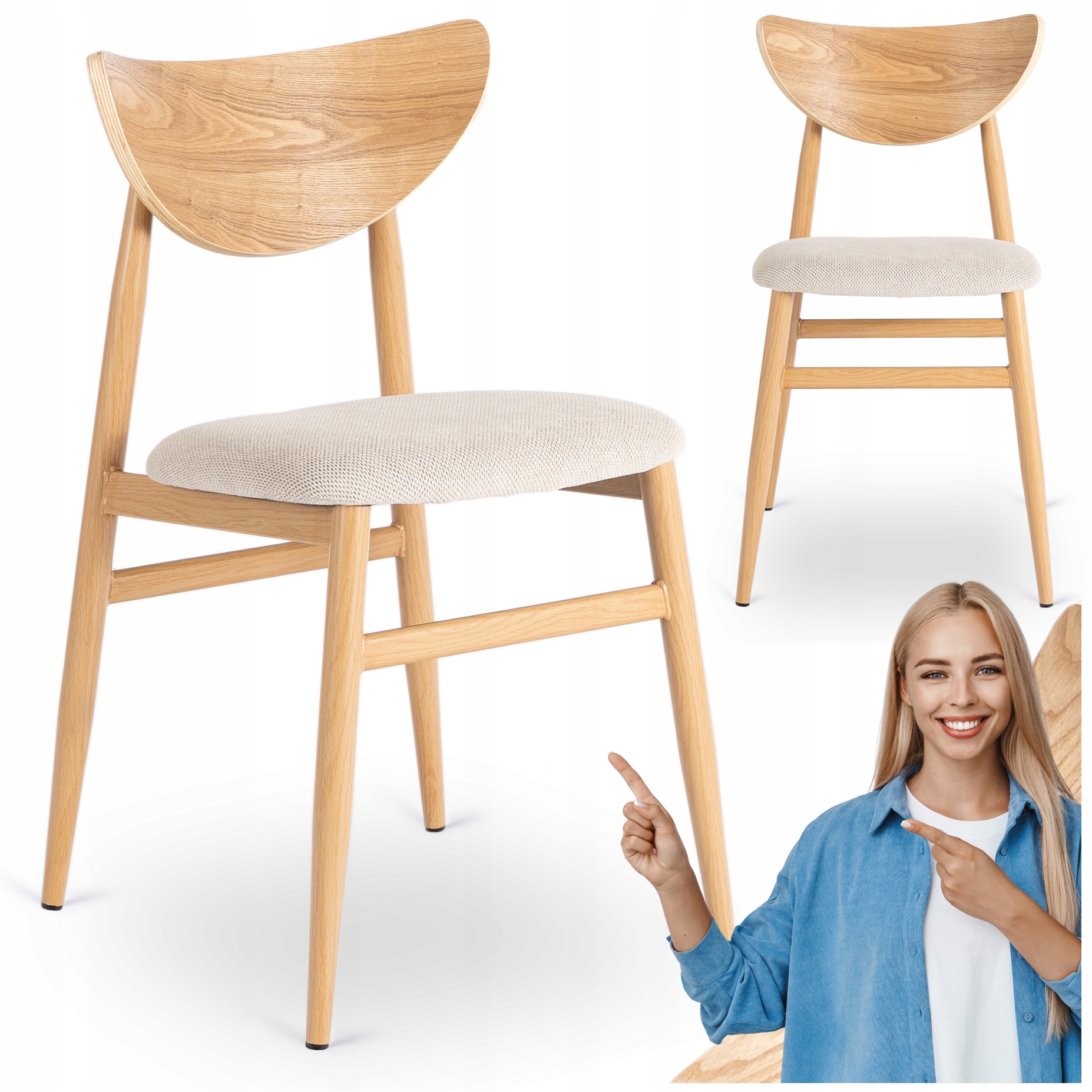✨ Krzesło Gięte Tapicerowane Do Kuchni Salonu Jadalni Kremowe Dąb BRAGA