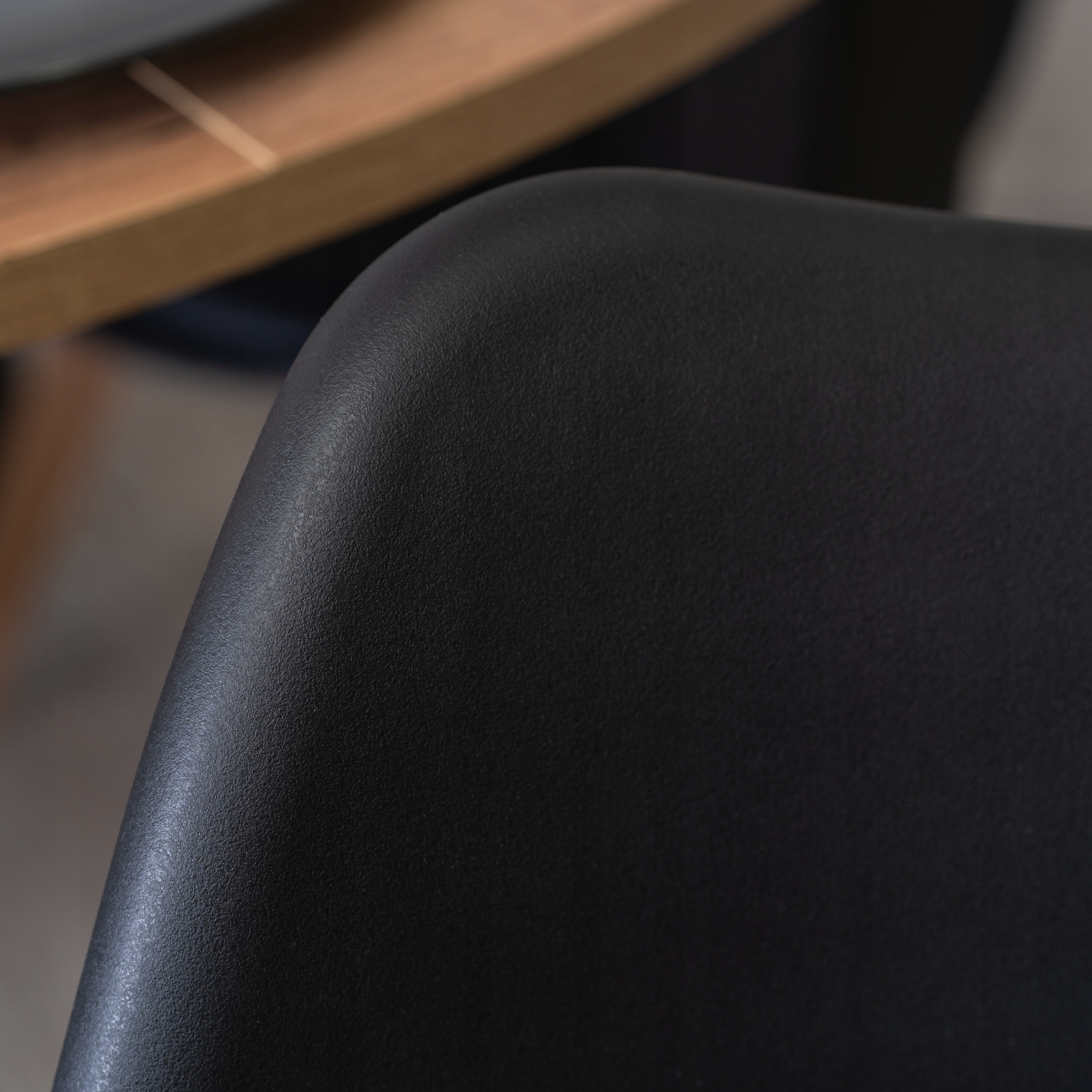 ✨ Krzesło zachwyca nie tylko wyglądem, ale i wygodą. Oparcie jest wykonane z miękkiego, a jednocześnie wytrzymałego tworzywa sztucznego, dzięki czemu został mu nadany wygodny wklęsły kształt, który dobrze przylega do pleców. Siedzisko posiada miękką poduszkę z pianki tapicerskiej i wysokiej jakości ekoskóry.