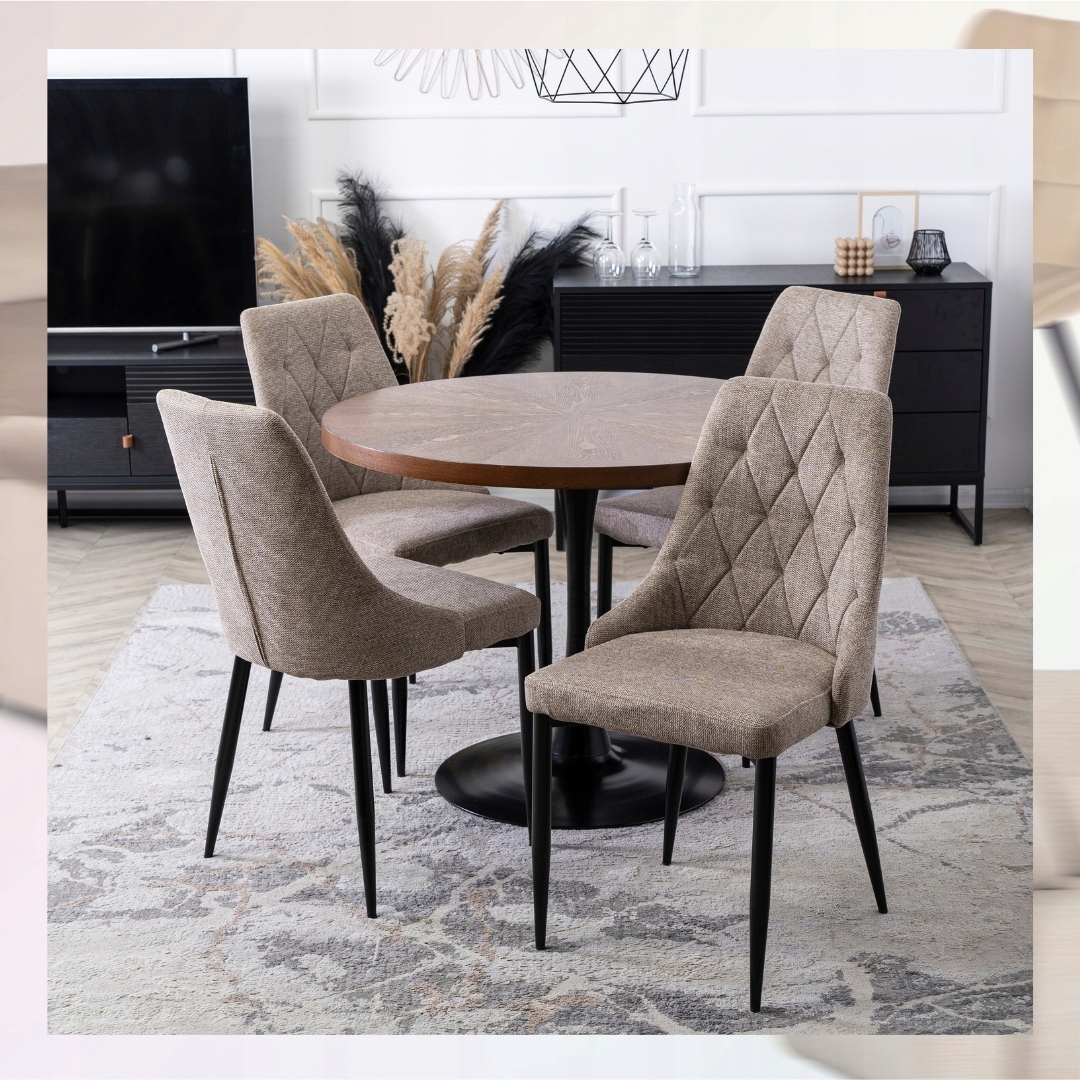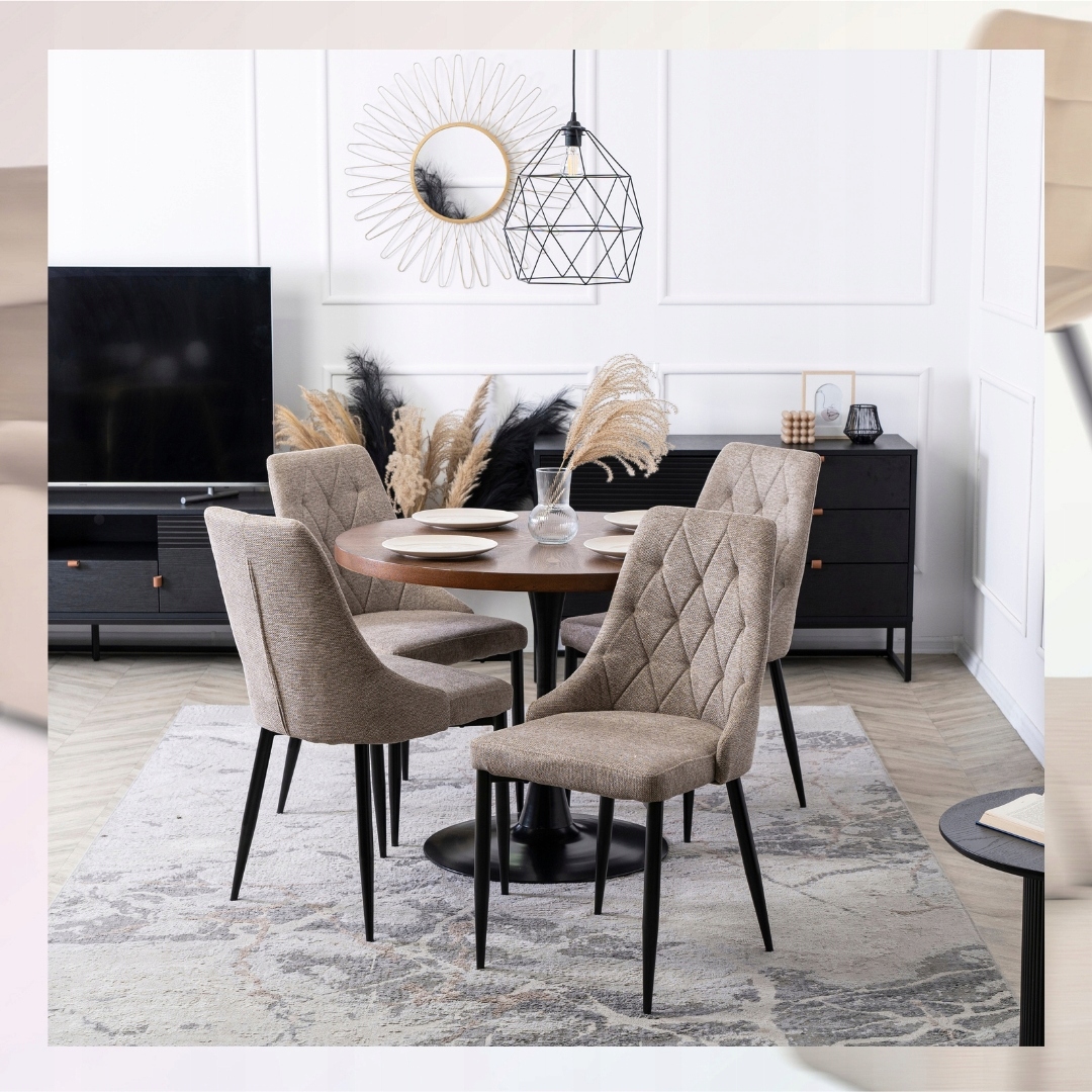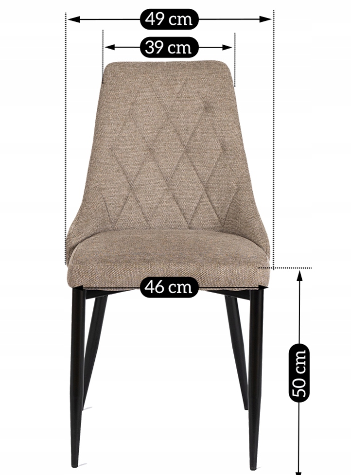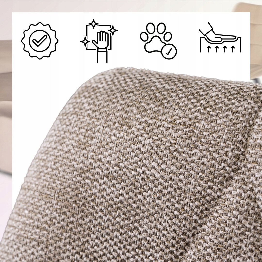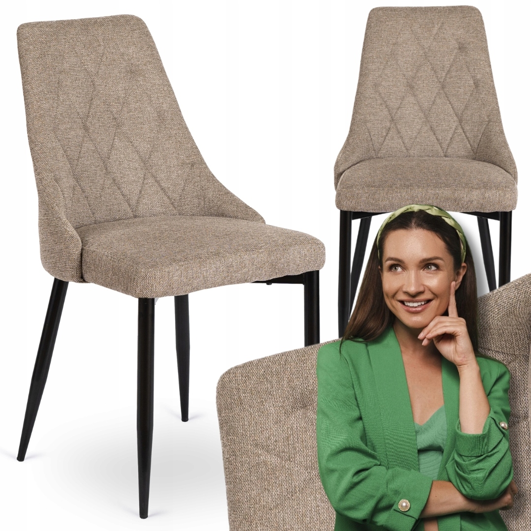 Krzesło posiada symetryczne przeszycia, które tworzą elegancki wzór rombów. Dzięki temu oparcie wygląda wyjątkowo stylowo i przyciąga uwagę.