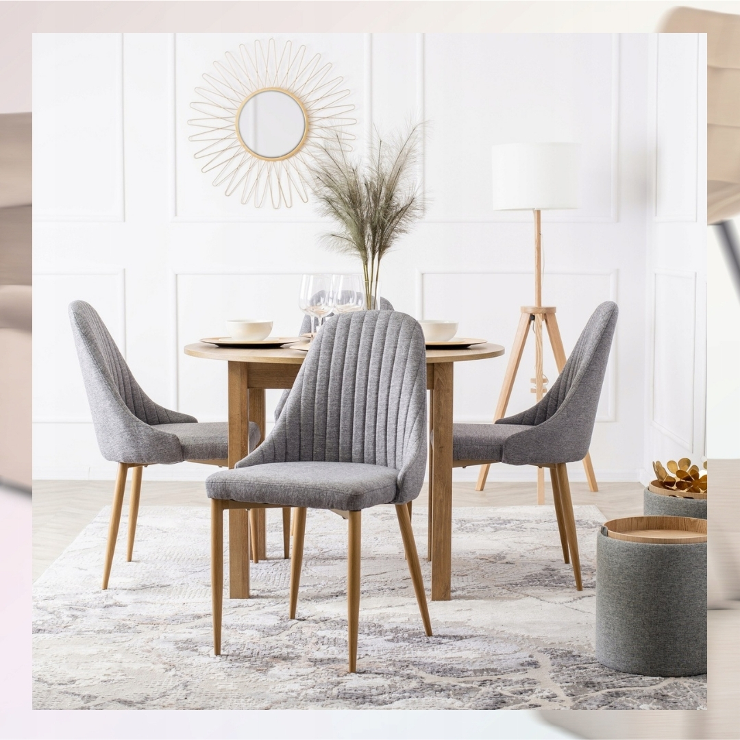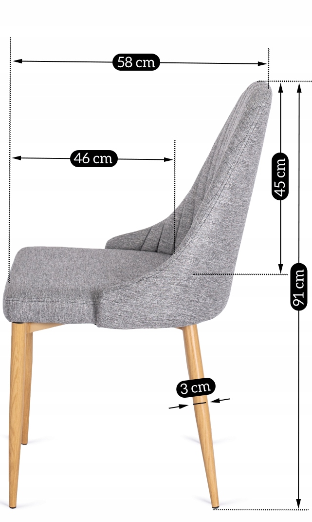 - 1× Krzesło Tapicerowane TORINO w kolorze popiel – złoty dąb