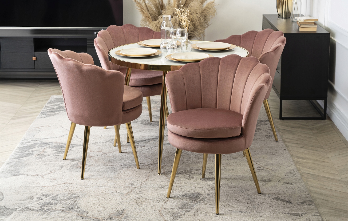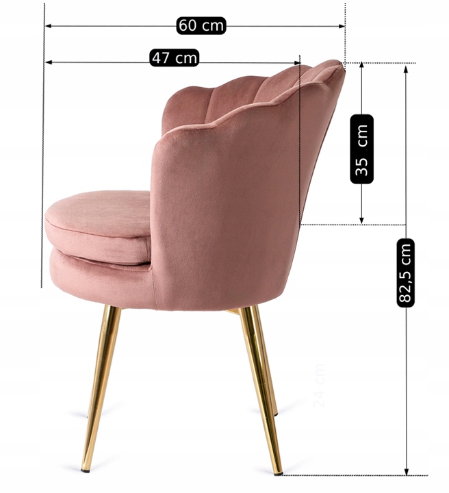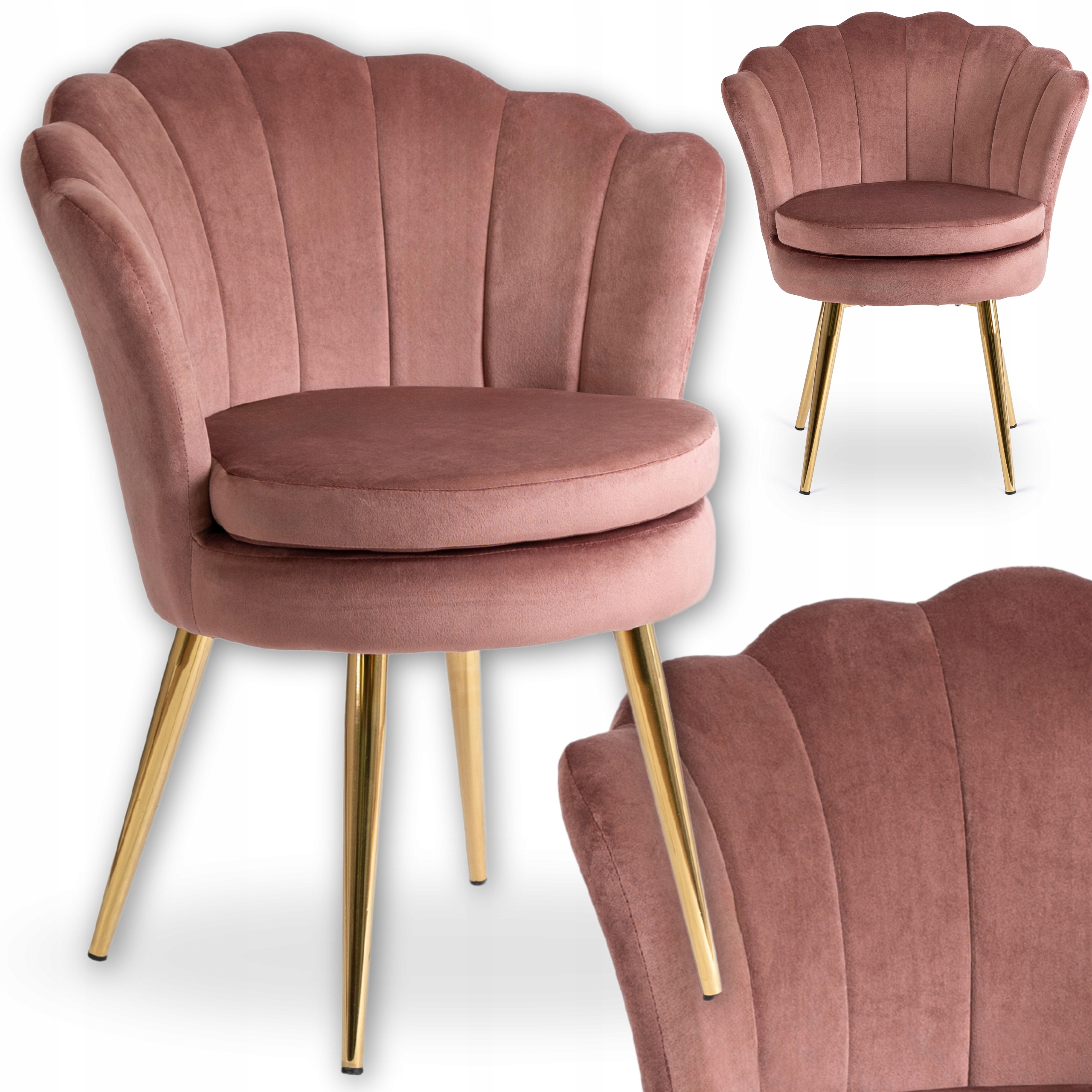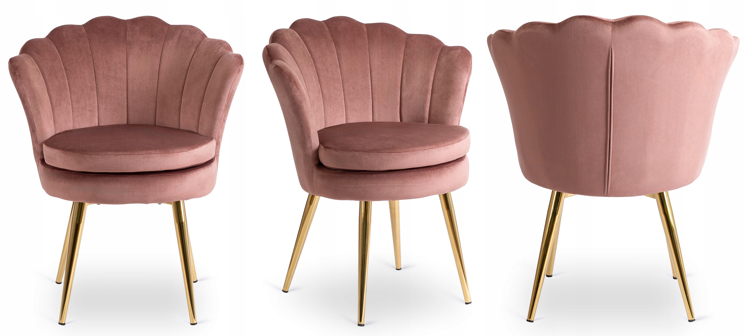 Krzesło Muszelka Do Salonu Jadalni Toaletki Welurowe Glamour VIOLA Różowe ⭐⭐⭐⭐⭐