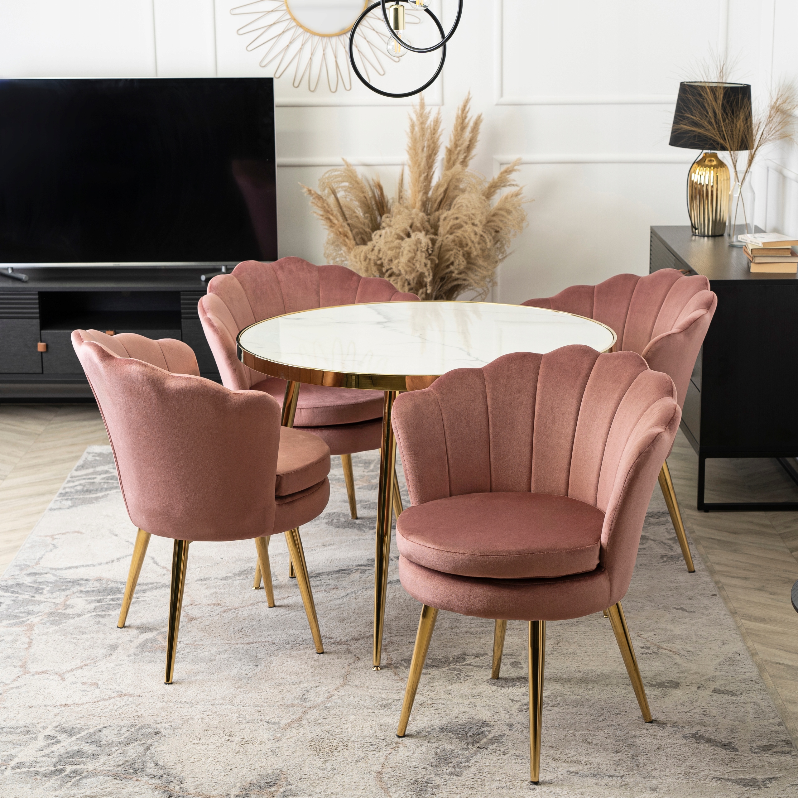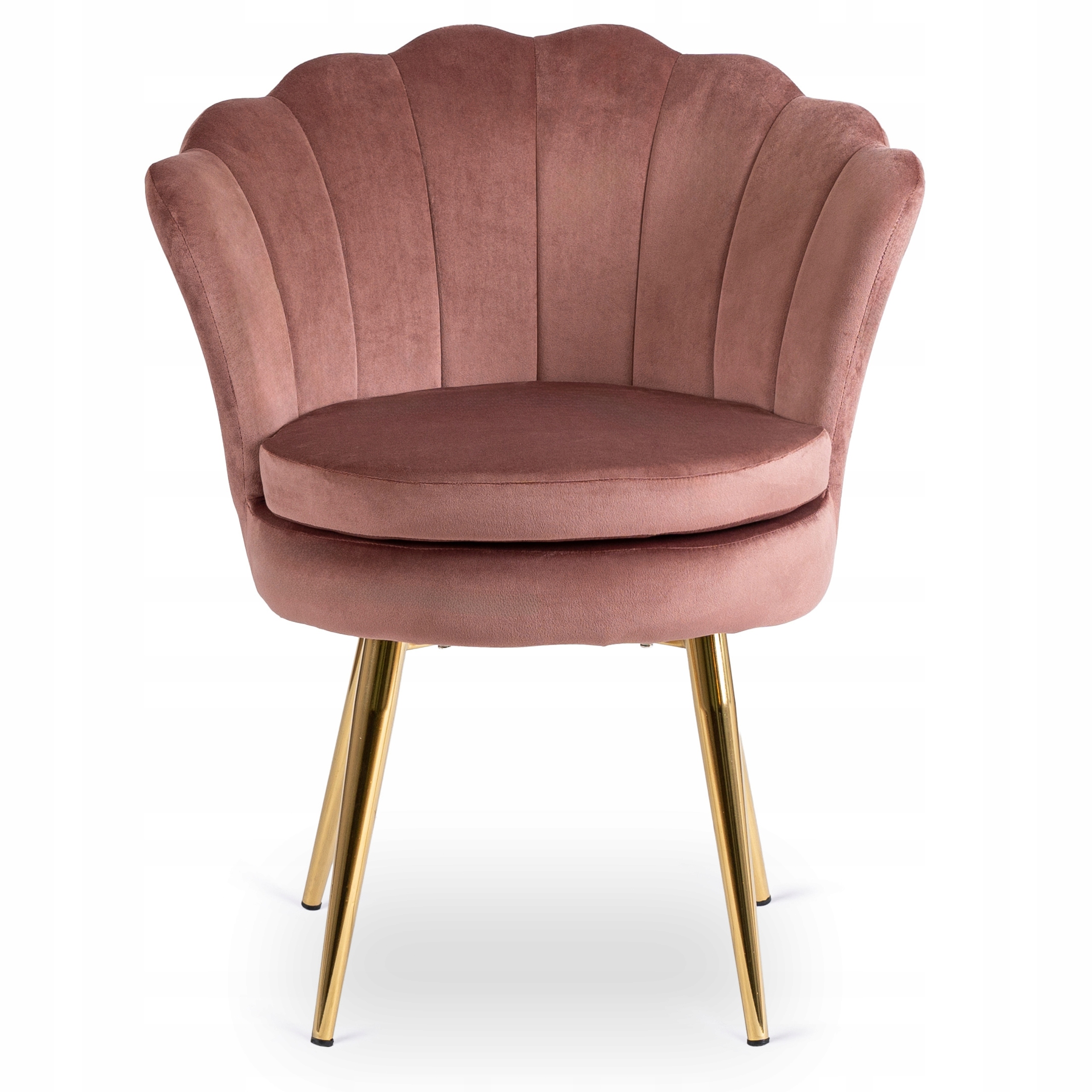 - Fotel muszelka VIOLA w kolorze róż ze złotymi nogami