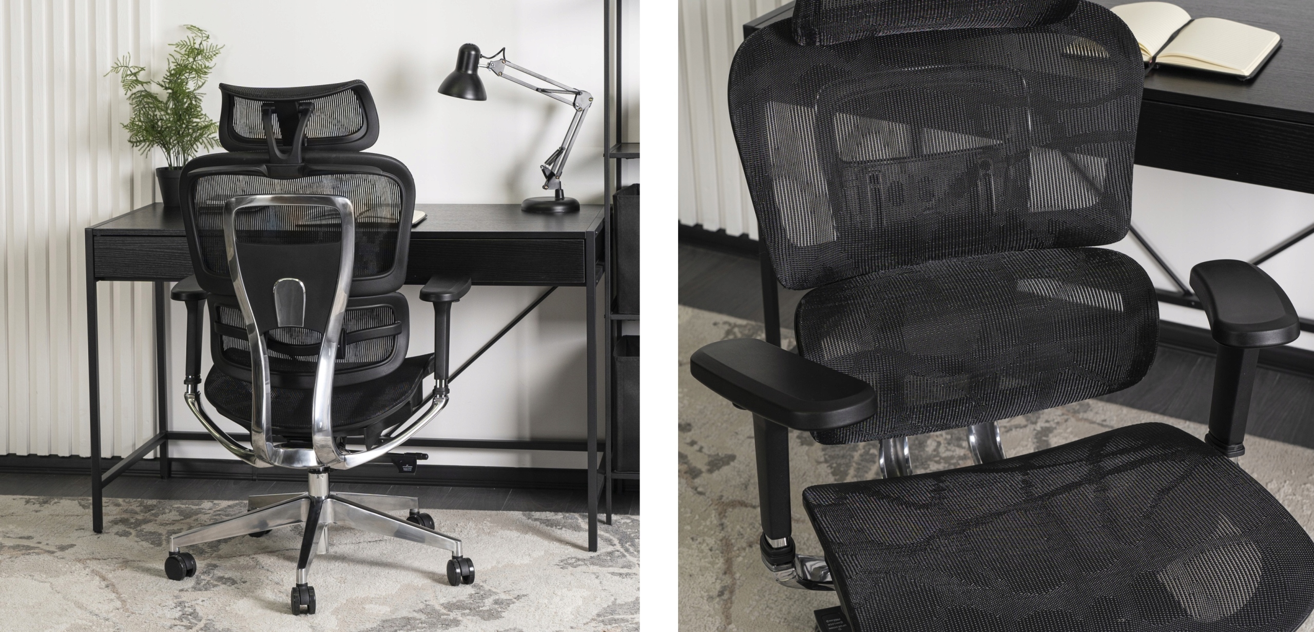 Fotel NINO posiada na oparciu specjalną mikro-siatkę typu Air Mesh. To dostosowujący się do kształtu sylwetki materiał, który umożliwia też doskonały przepływ powietrza, co sprawdzi się świetnie, szczególnie w cieplejsze dni.
