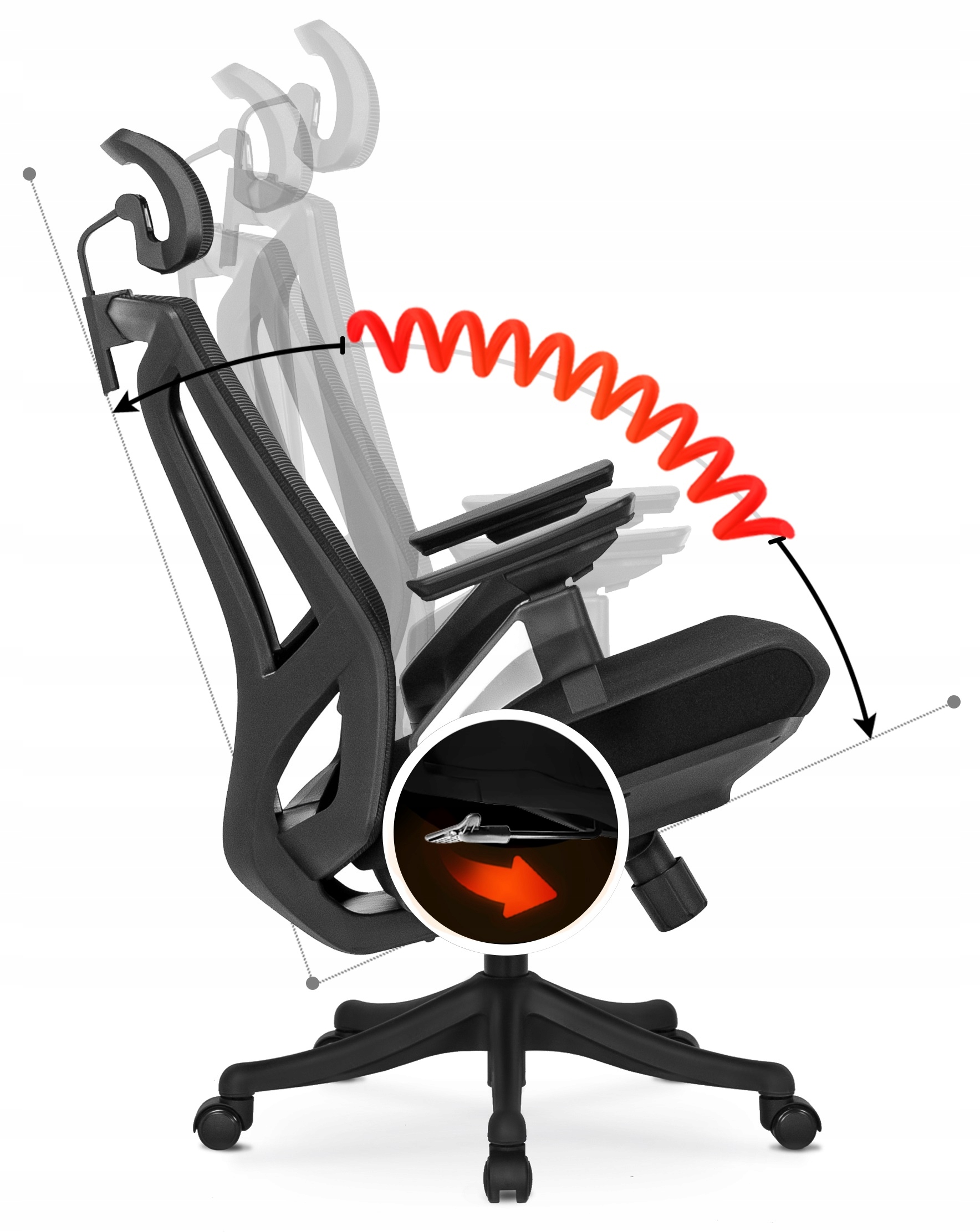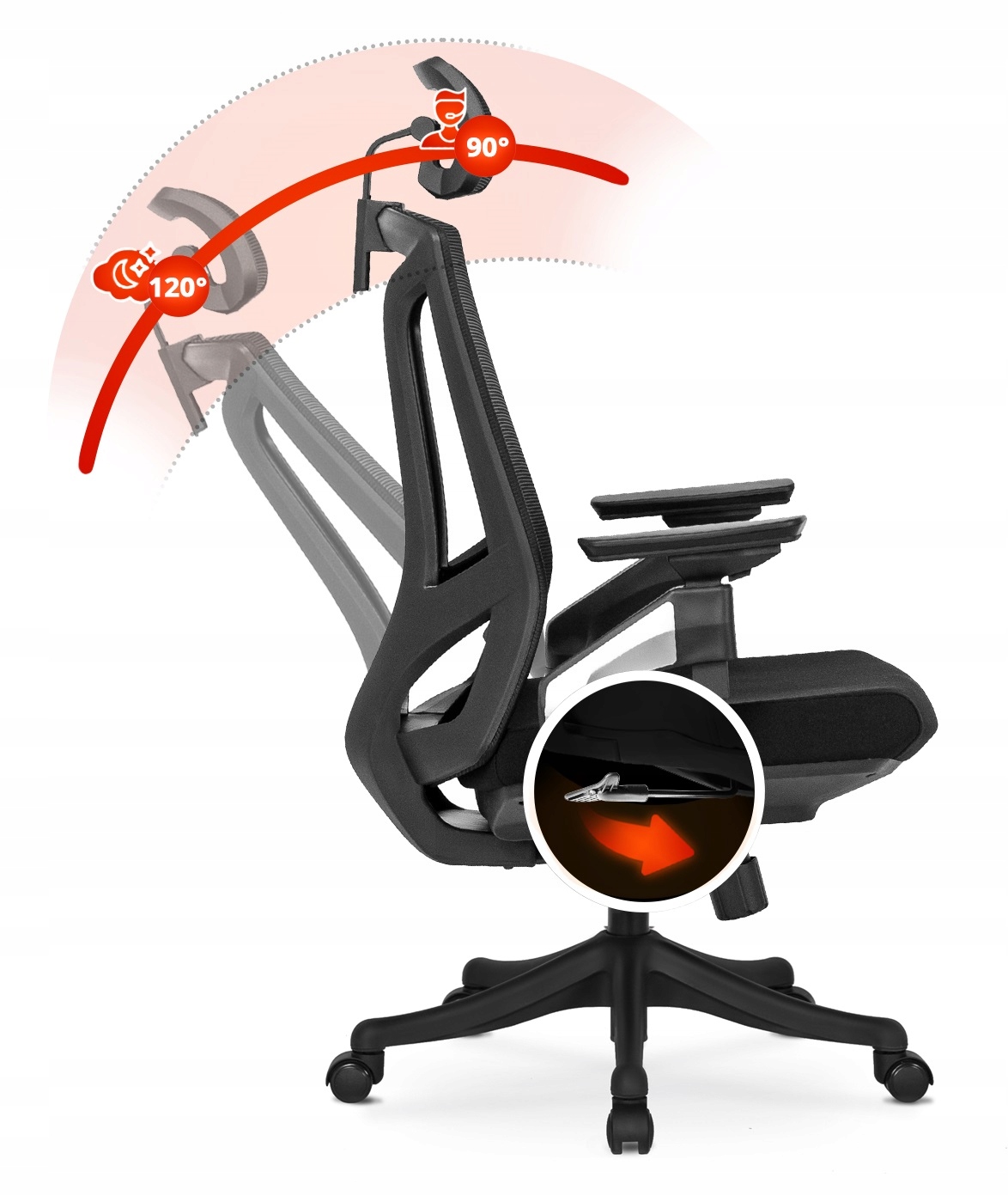 Jeśli chcesz, możesz odchylić samo oparcie do 120° względem siedziska z opcją blokady oparcia w takowej pozycji. W sposób możesz niemal położyć się w swoim fotelu biurowym.